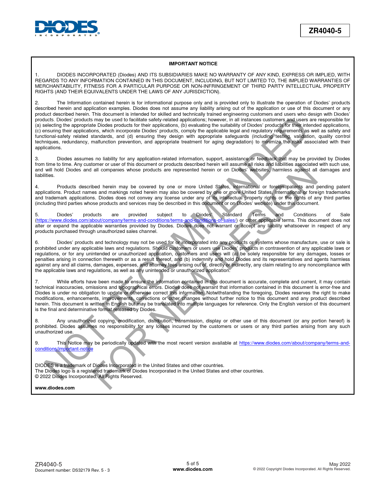 | Seiten / Seite | 5 / 5 — ZR4040-5. IMPORTANT NOTICE. www.diodes.com |