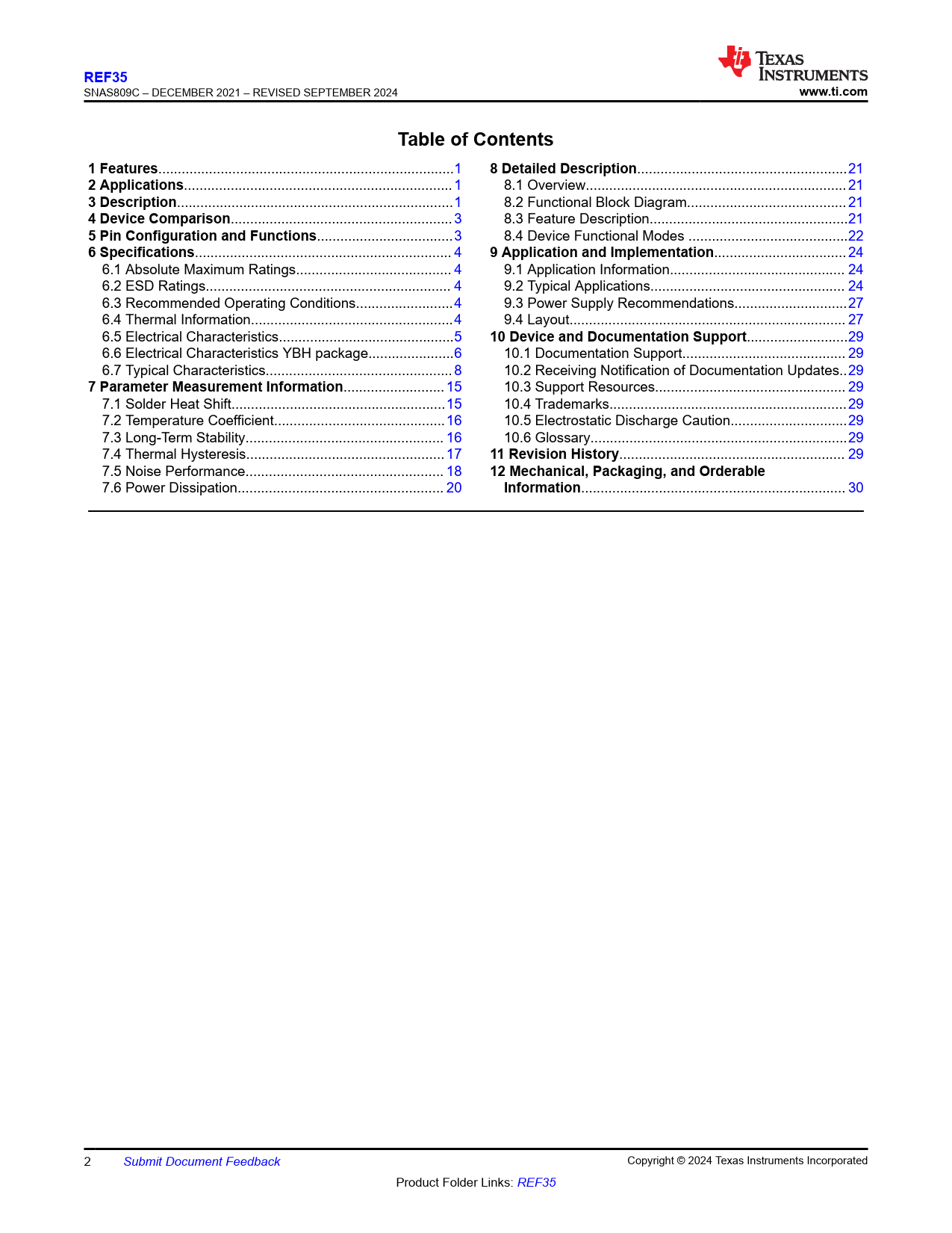 | Seiten / Seite | 44 / 2 — REF35. www.ti.com. Table of Contents. 1 Features. 8 Detailed Description. … |