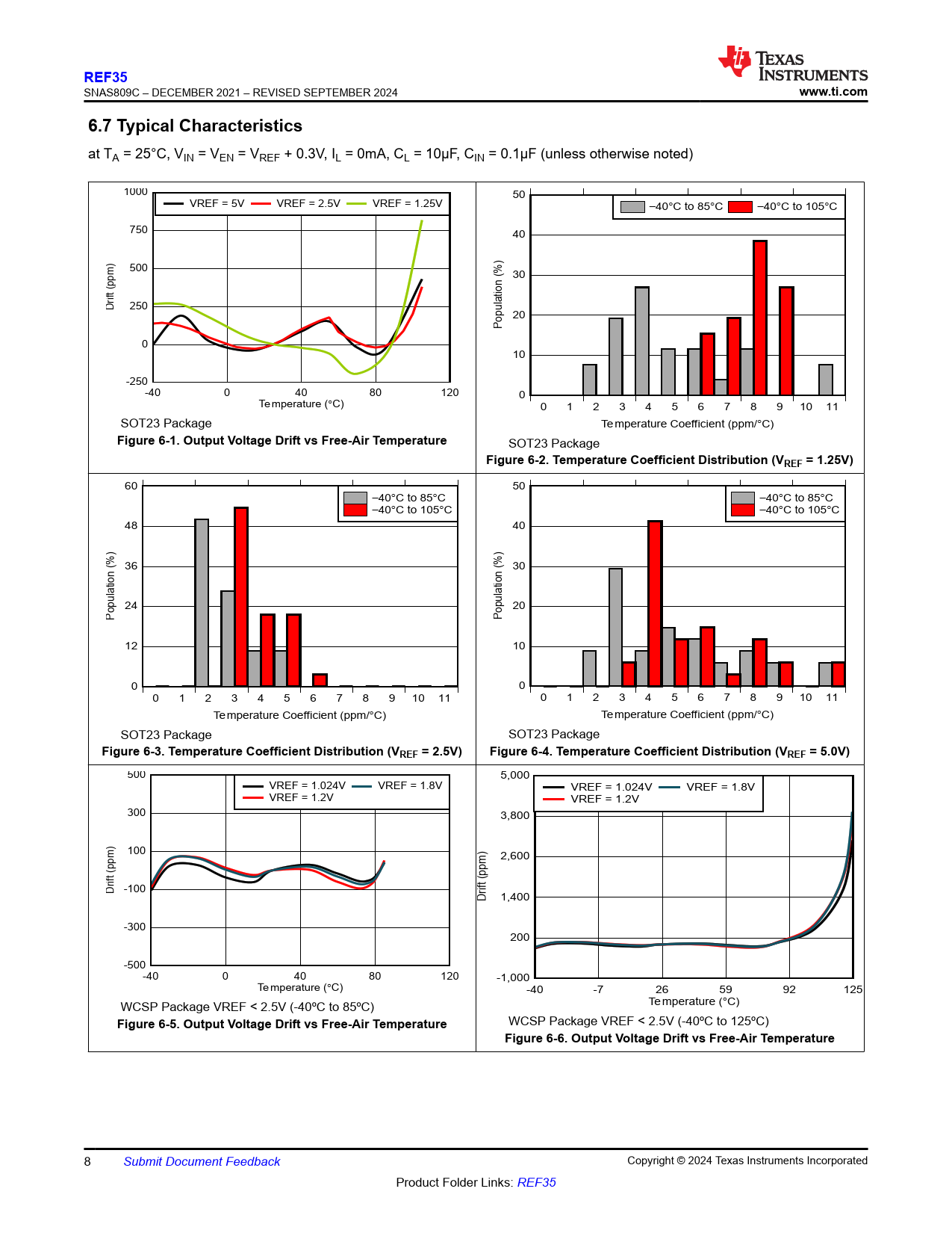 REF35. www.ti.com. 6.7 Typical Characteristics. Figure 6-1. Output Voltage Drift vs Free-Air Temperature