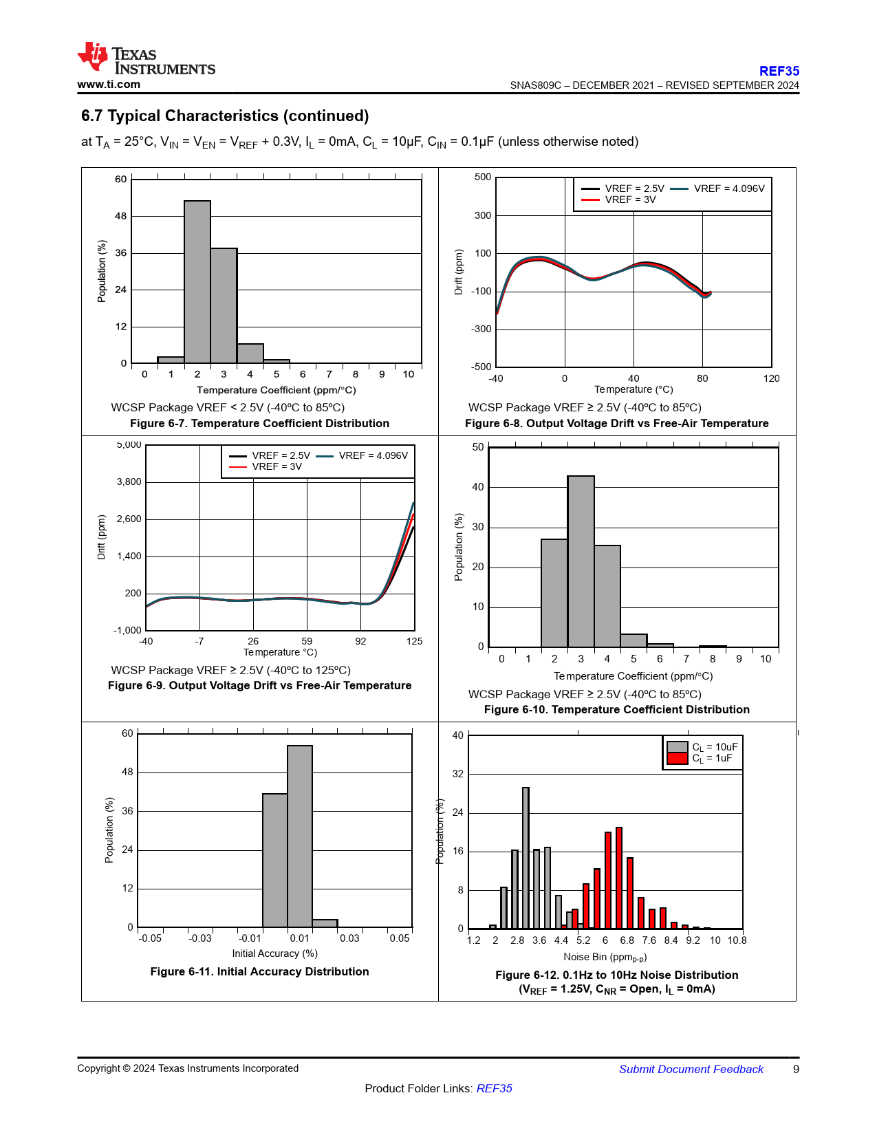 REF35. www.ti.com. 6.7 Typical Characteristics (continued). Figure 6-7. Temperature Coefficient Distribution
