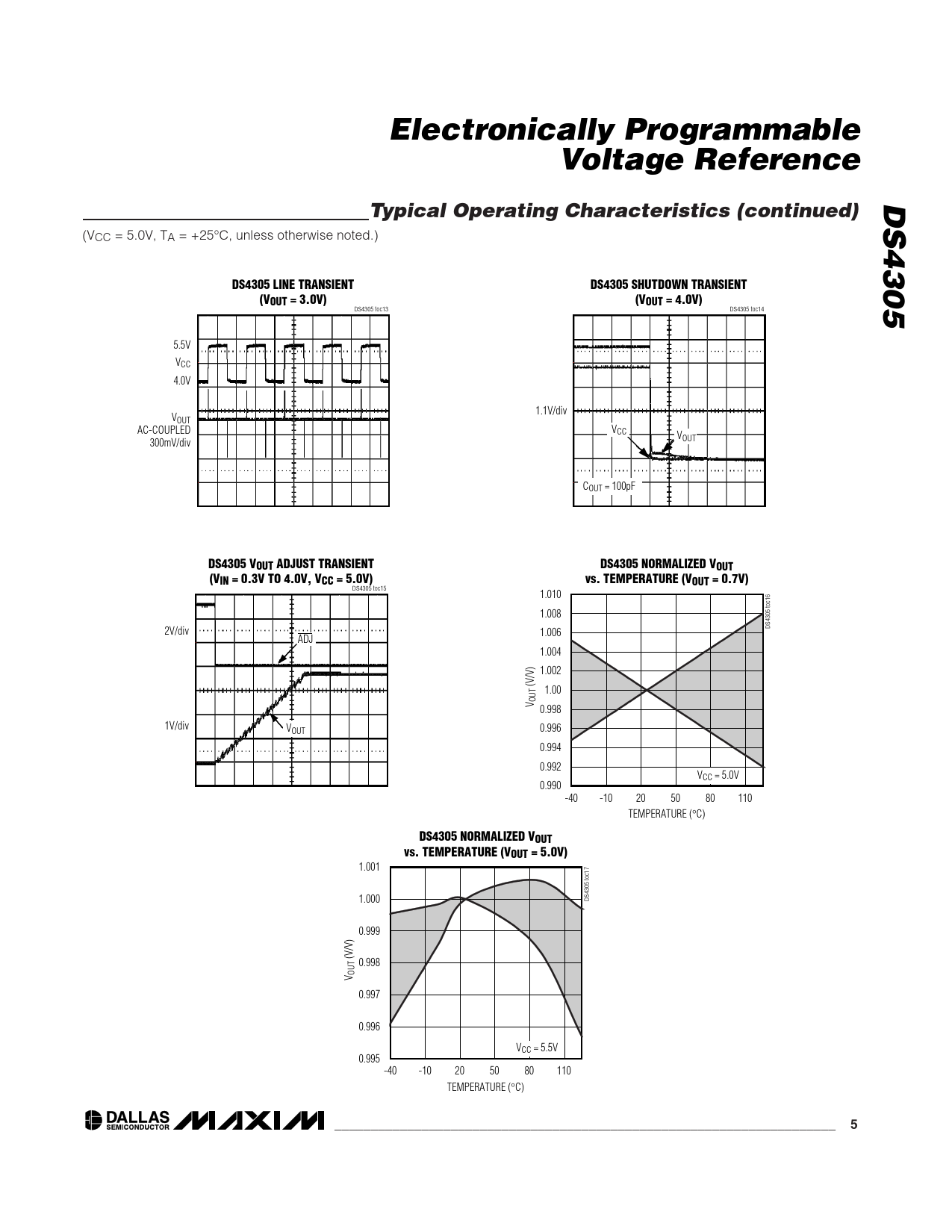 DS4305 NORMALIZED VOUT vs. TEMPERATURE (VOUT = 5.0V)