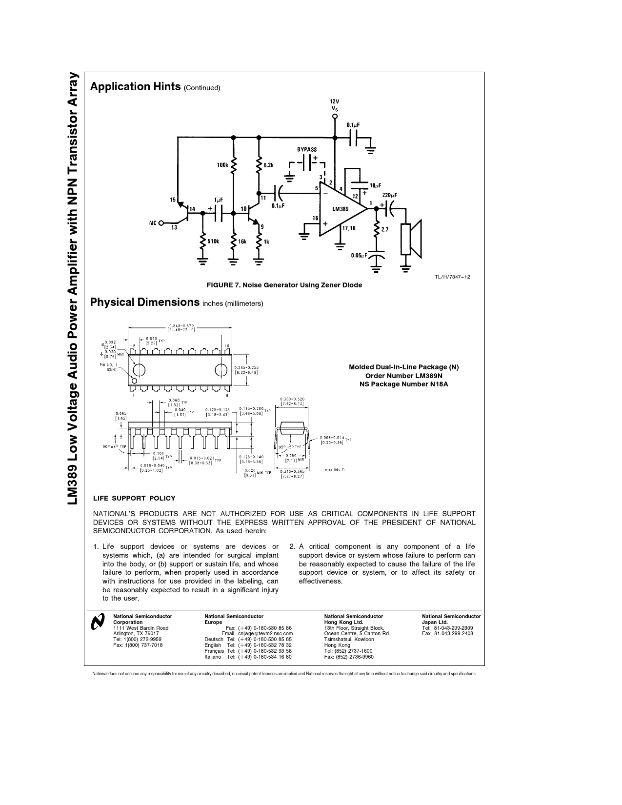 Application Hints (Continued) Array Transistor NPN with TL/H/7847 – 12 FIGURE 7 Noise Generator Using Zener Diode Amplifier Physical