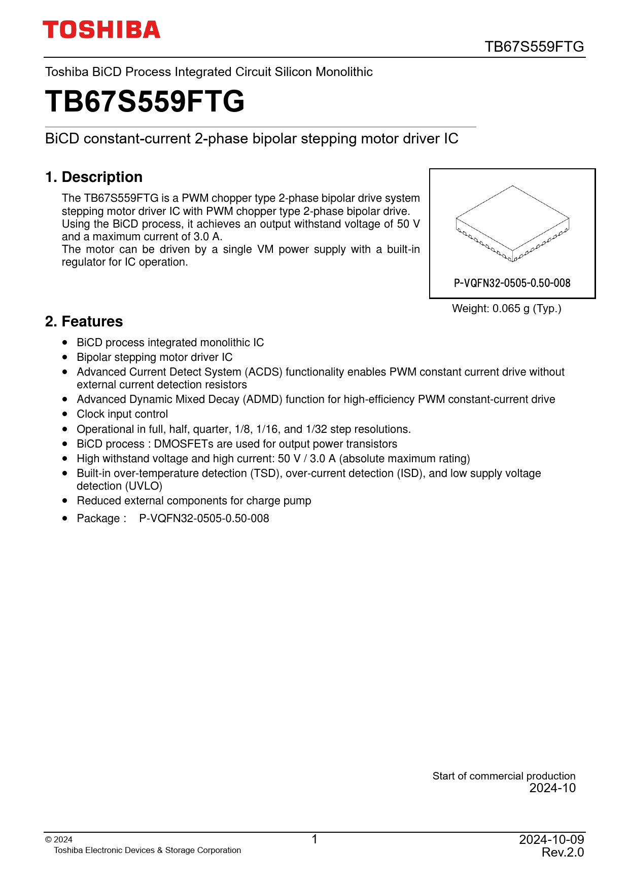 TB67S559FTG. 1. Description. 2. Features