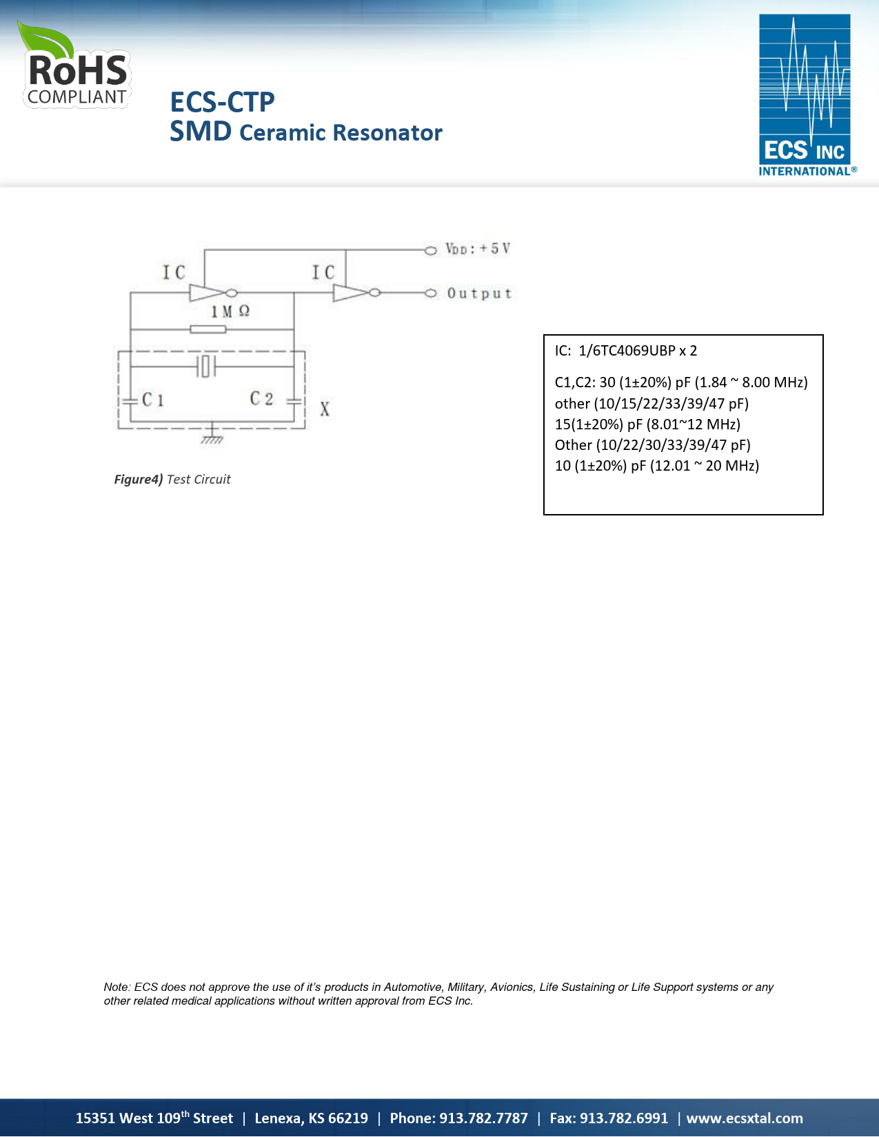 Test Circuit Note: ECS does not approve the use of it’s products in Automotive, Military, Avionics, Life Sustaining or Life Support systems or any other related medical applications without written approval from ECS Inc.
