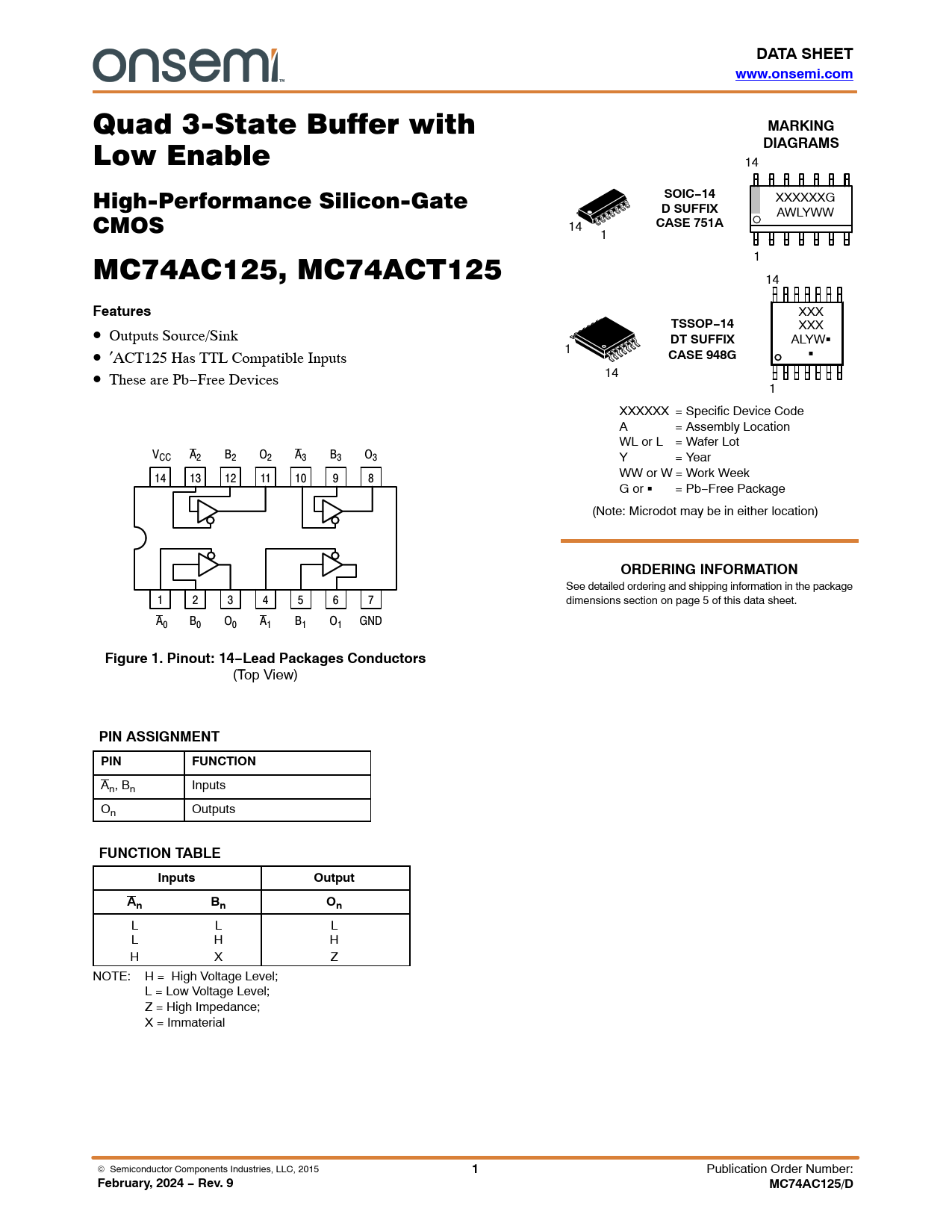 Datasheet MC74AC125, MC74ACT125 (ON Semiconductor)