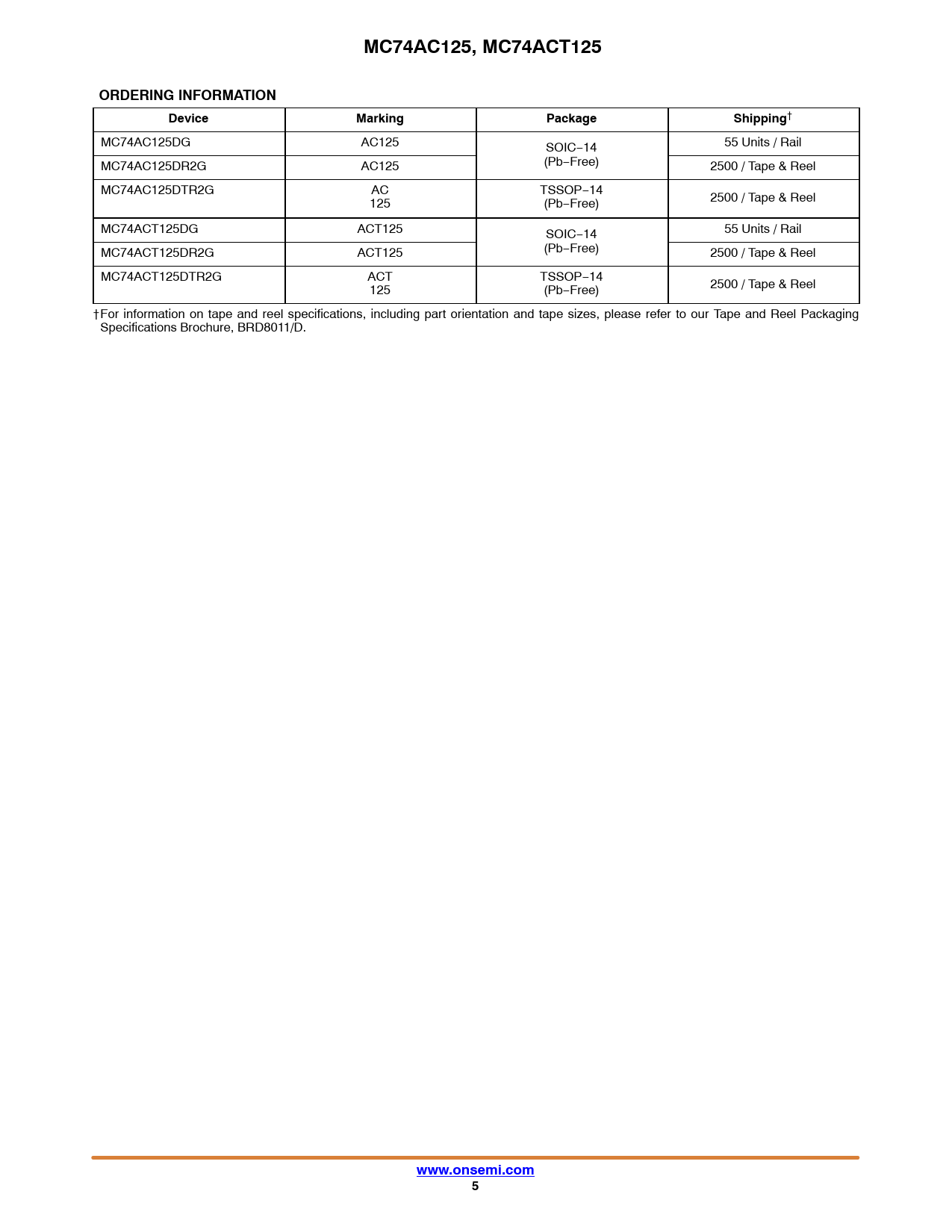 MC74AC125, MC74ACT125. ORDERING INFORMATION. Device. Marking. Package. Shipping. www.onsemi.com