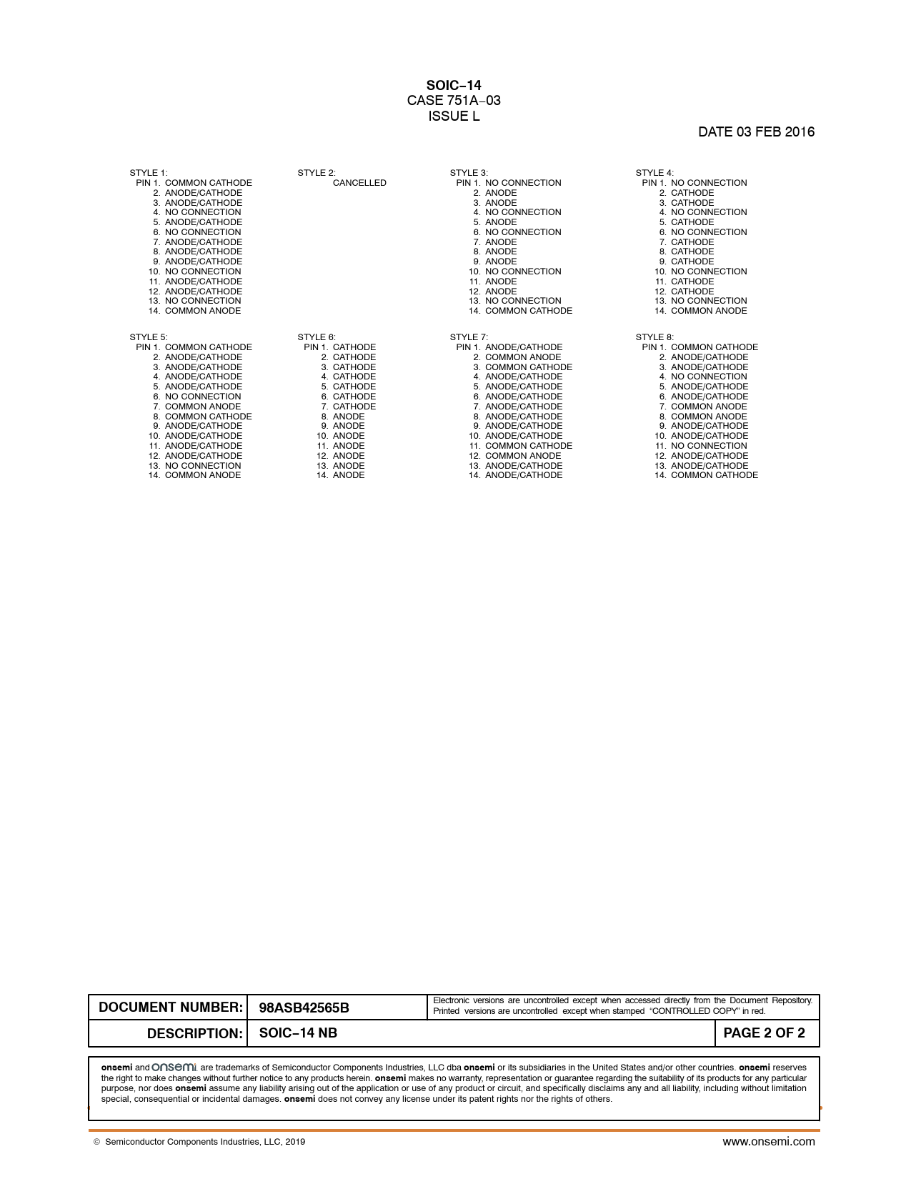 DESCRIPTION: SOIC−14 NB PAGE 2 OF 2 onsemi