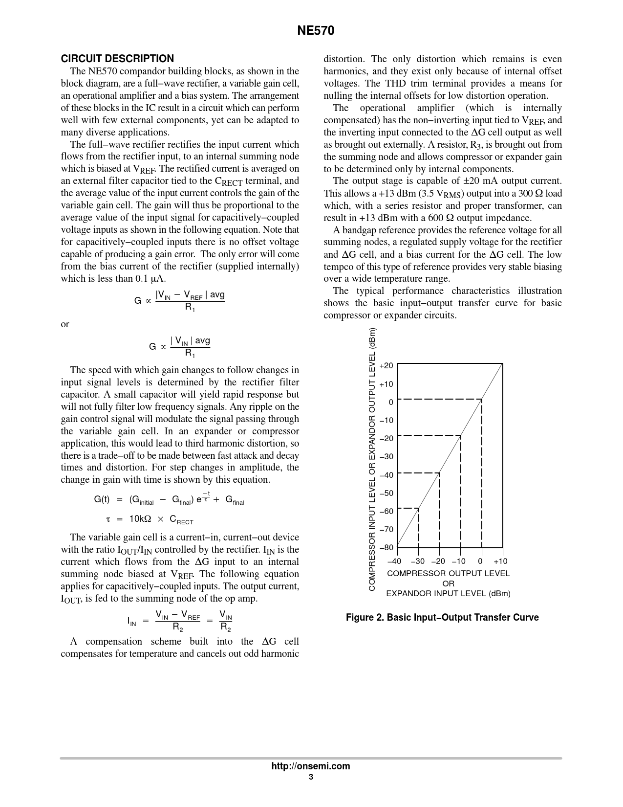 NE570 CIRCUIT DESCRIPTION Figure 2 Basic Input−Output Transfer Curve http://onsemi.com