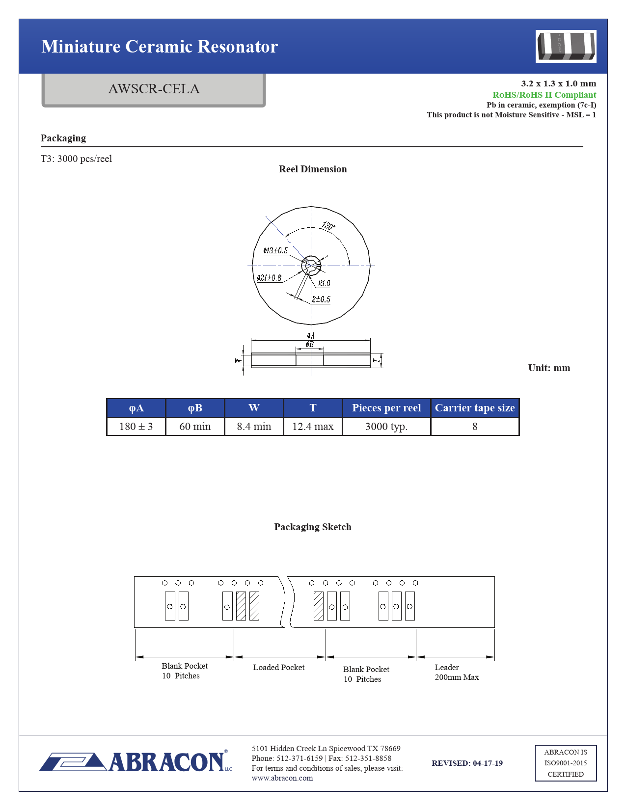 For terms and conditions of sales, please visit: CERTIFIED www.abracon.com