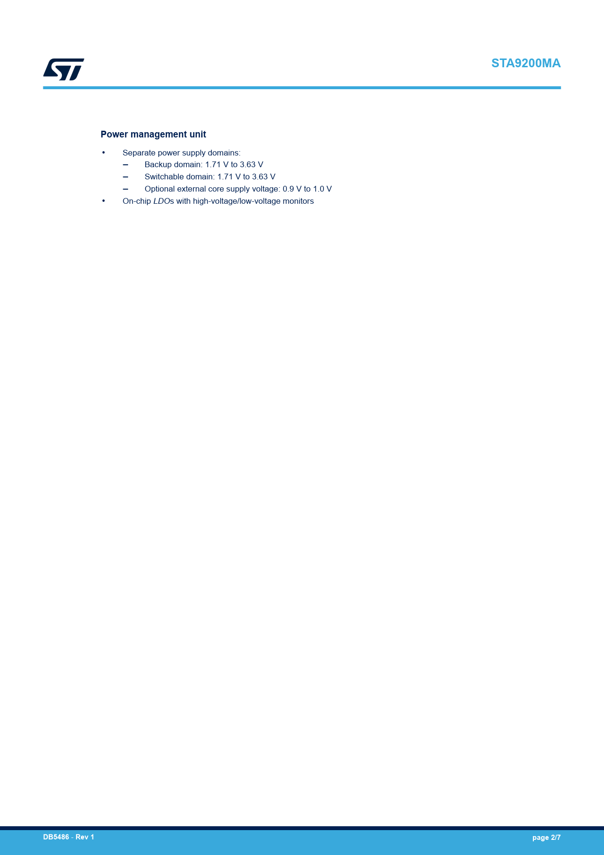 | Seiten / Seite | 7 / 2 — STA9200MA. Power management unit. DB5486. Rev 1. page 2/7 |