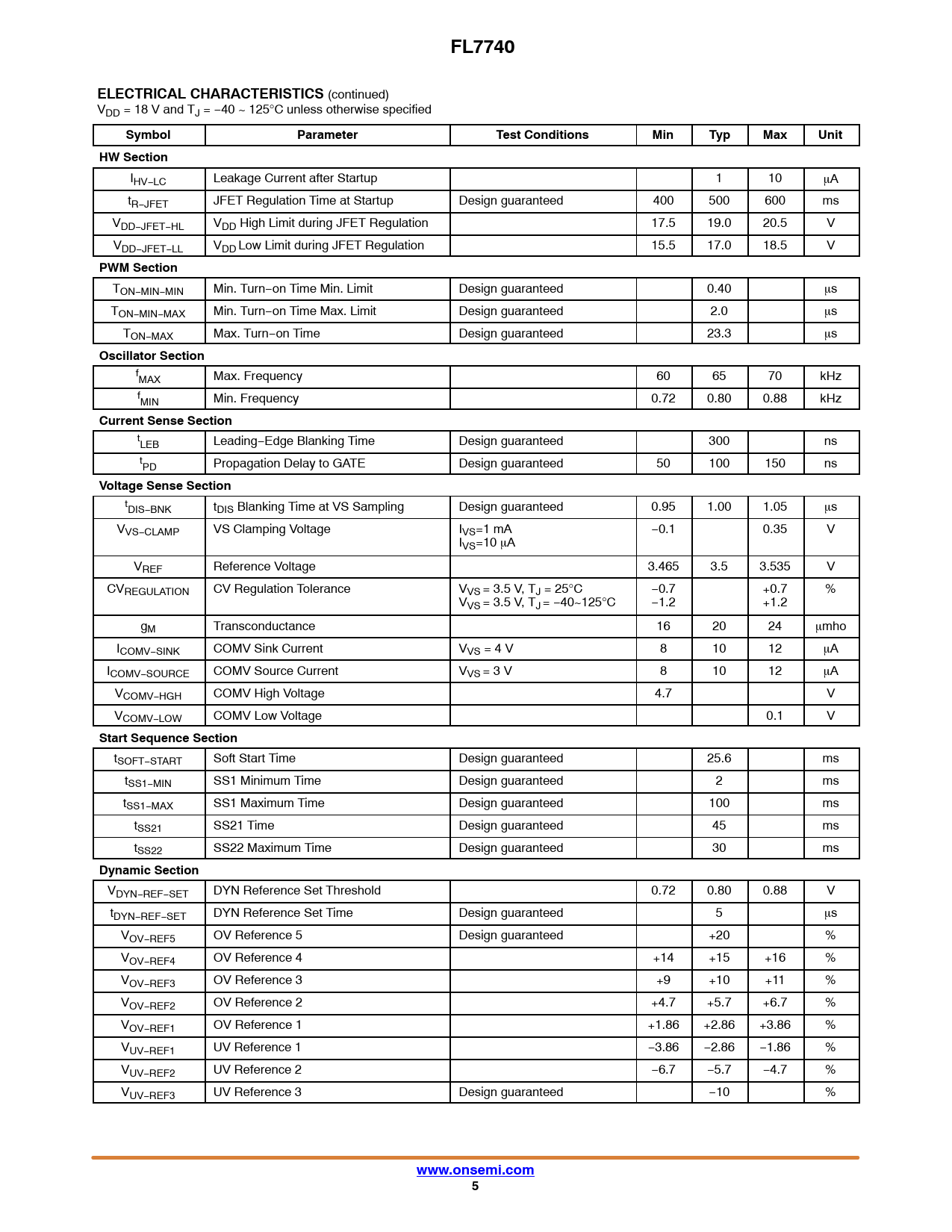 FL7740 ELECTRICAL CHARACTERISTICS Symbol Parameter Test Conditions Min Typ Max Unit HW Section PWM Section Oscillator Section