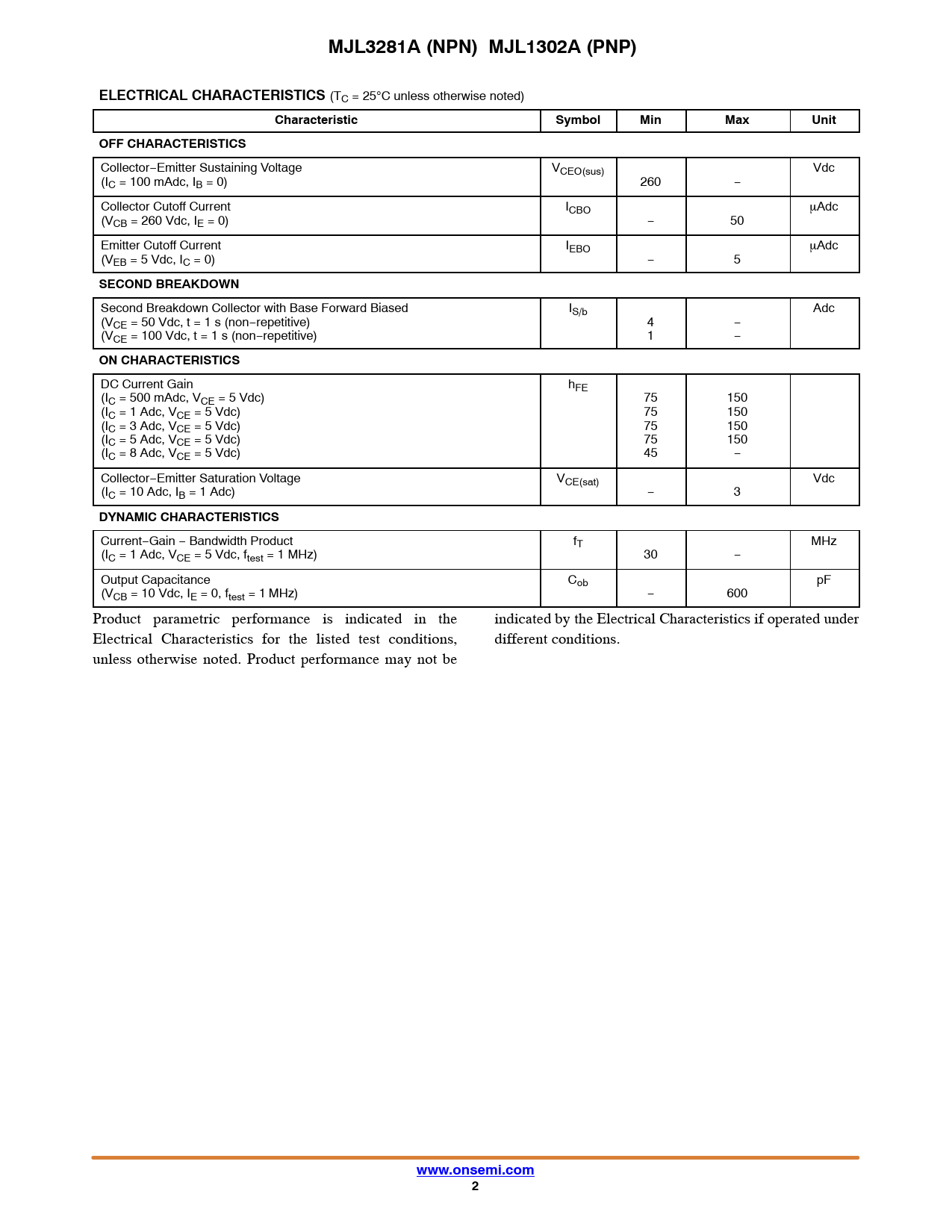 Datasheet MJL3281A, MJL1302A (ON Semiconductor) - 2