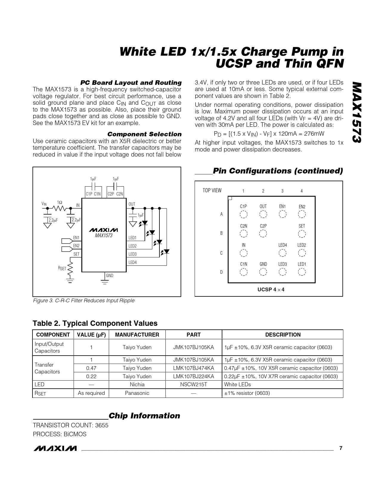 White LED 1x/1.5x Charge Pump in. UCSP and Thin QFN. MAX1573. PC Board Layout and Routing. Component Selection