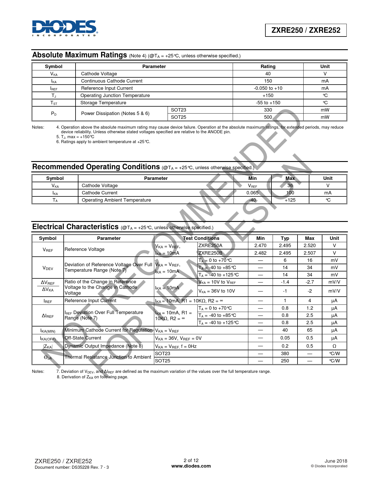 Datasheet ZXRE250, ZXRE252 (Diodes) - 2