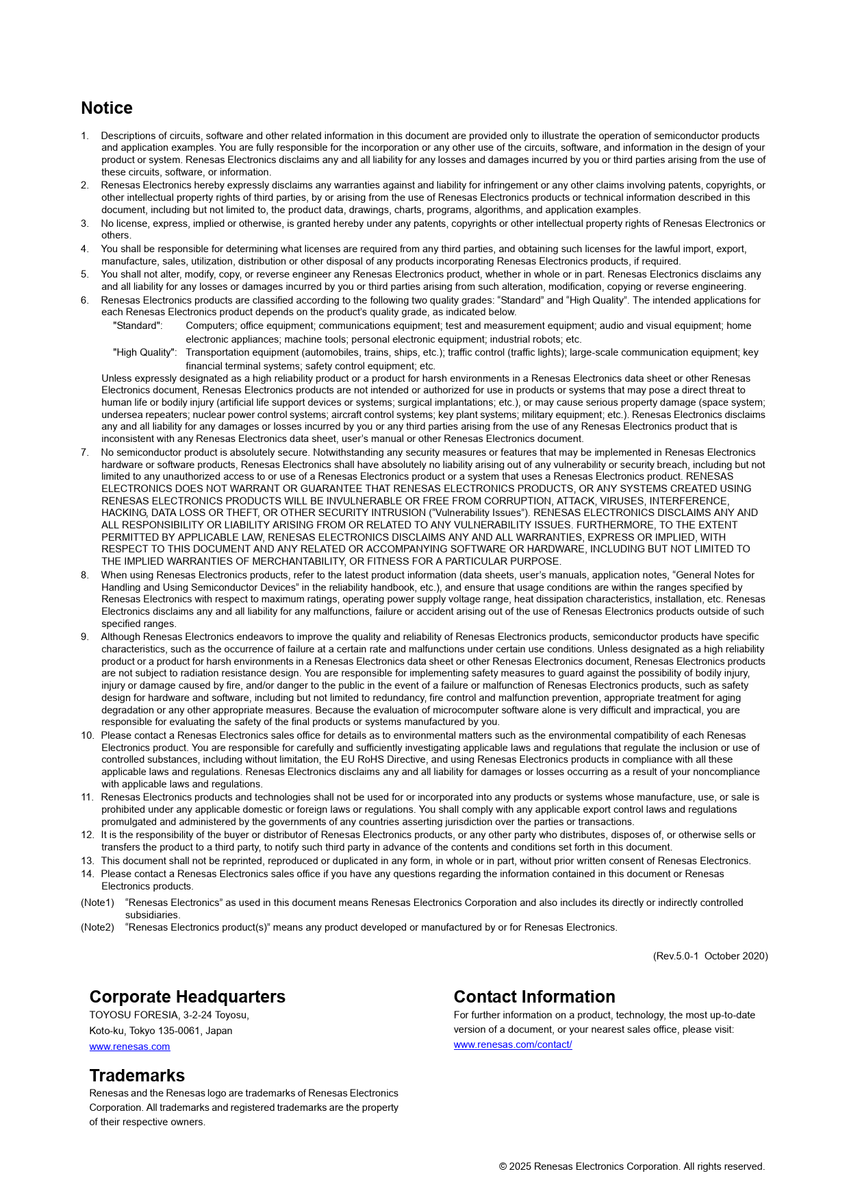 TOYOSU FORESIA, 3-2-24 Toyosu, For further information on a product, technology, the most up-to-date Koto-ku, Tokyo 135-0061, Japan version of a document, or your nearest sales office, please visit: www.renesas.com www.renesas.com/contact/