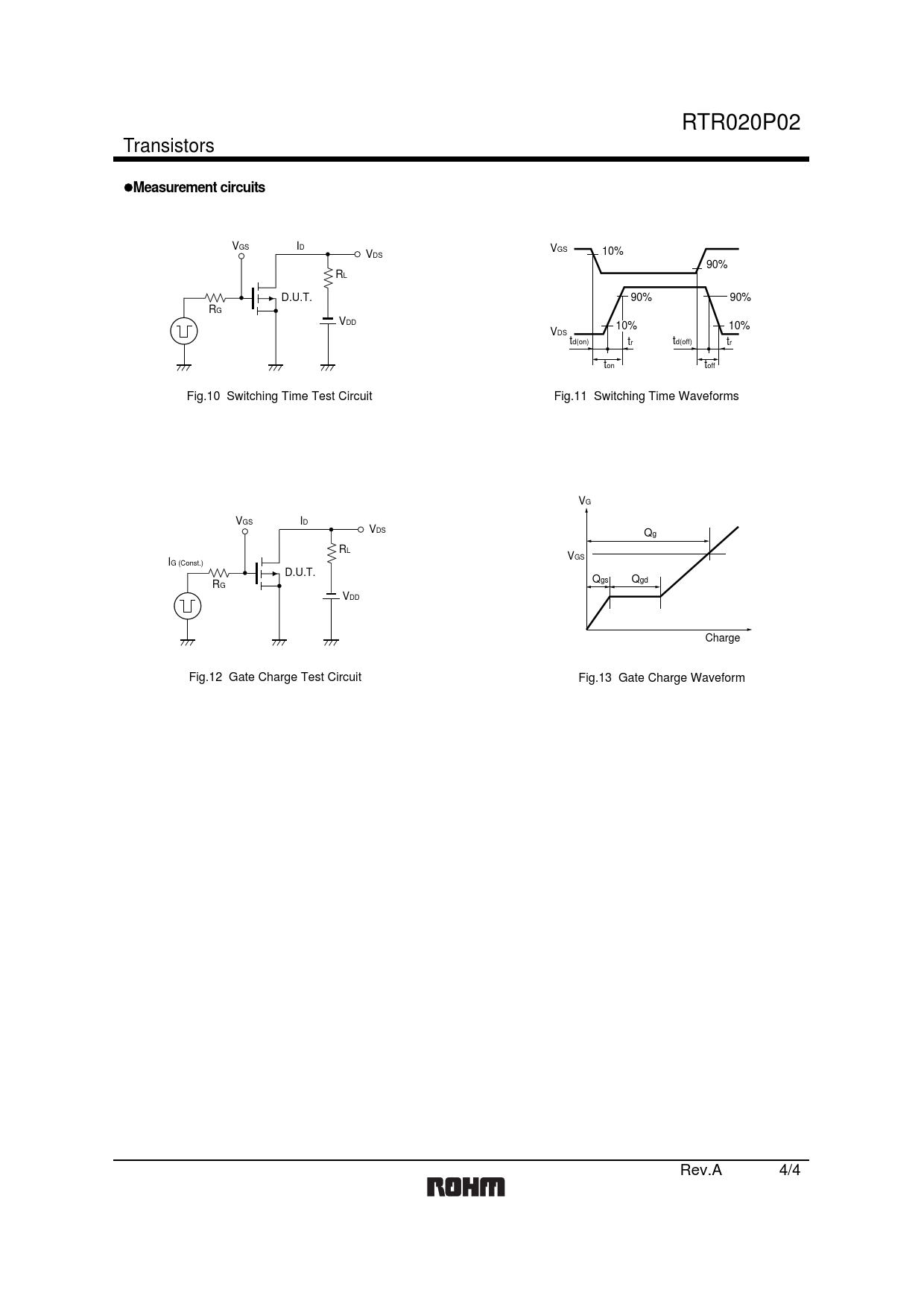 VGS ID VGS V 10% DS 90% RL D.U.T. 90% 90% RG VDD 10% 10% VDS td(on) tr td(off) tr ton toff Fig.10 Switching Time Test Circuit Fig.11 Switching Time Waveforms VG VGS ID VDS Qg RL VGS IG (Const.) D.U.T. Q R gs Qgd G VDD Charge Fig.12 Gate Charge Test Circuit Fig.13 Gate Charge Waveform Rev.A 4/4 Document Outline 2.5V Drive Pch MOS FET RTR020P02