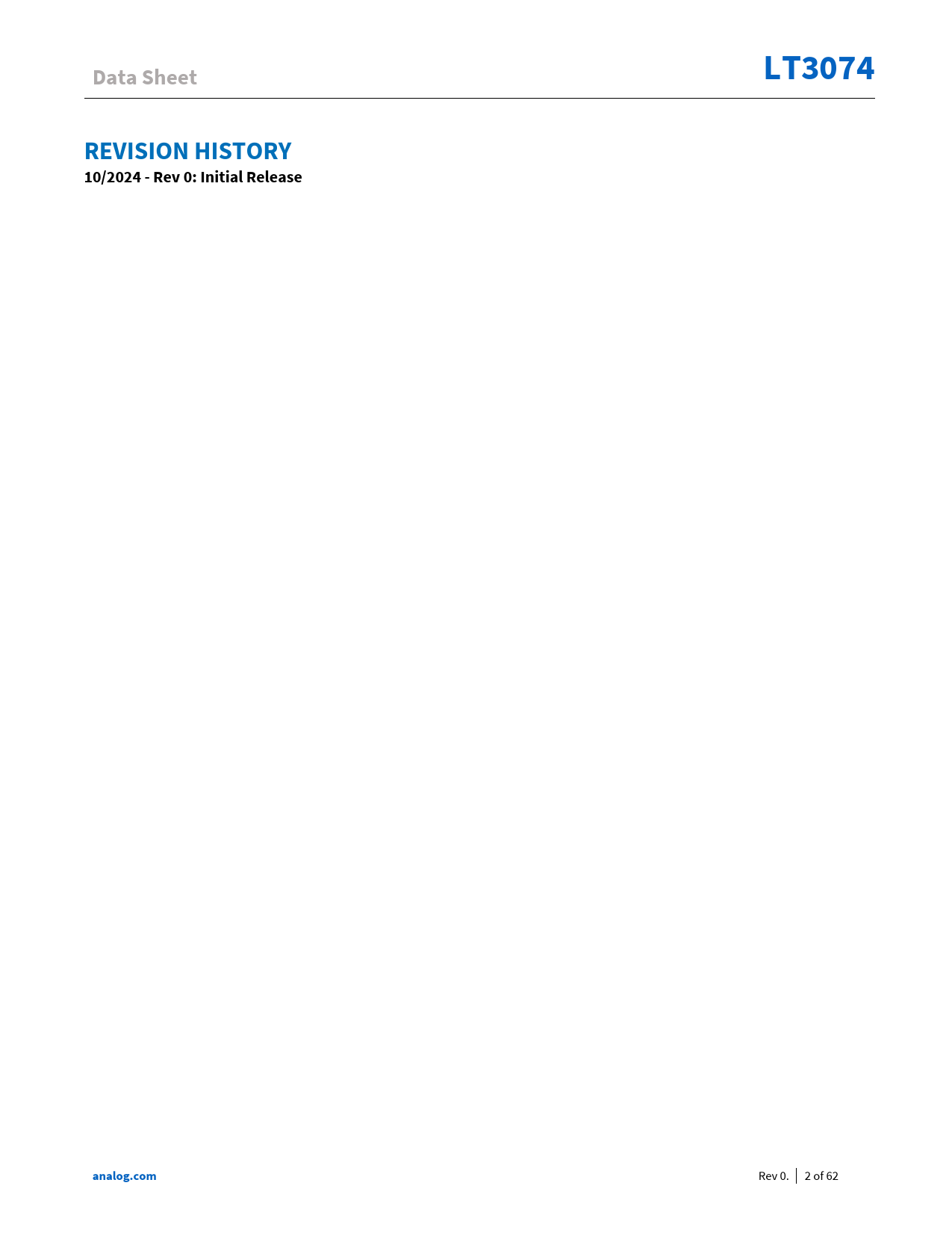 Data Sheet LT3074 REVISION HISTORY 10/2024 - Rev 0: Initial Release analog.com
