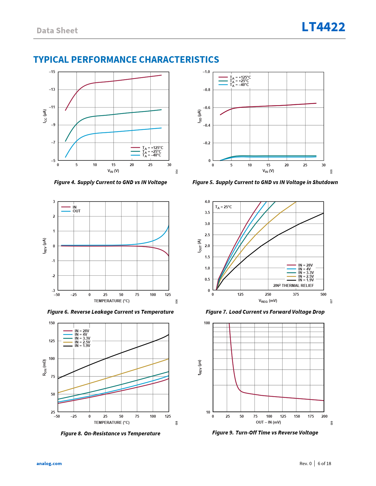 Data Sheet. LT4422. TYPICAL PERFORMANCE CHARACTERISTICS. –15. –1.0. TA = +125°C. TA = +25°C. TA = –40°C. –13. –0.8. –11. –0.6. I CC. I SD. –0.4. –0.2