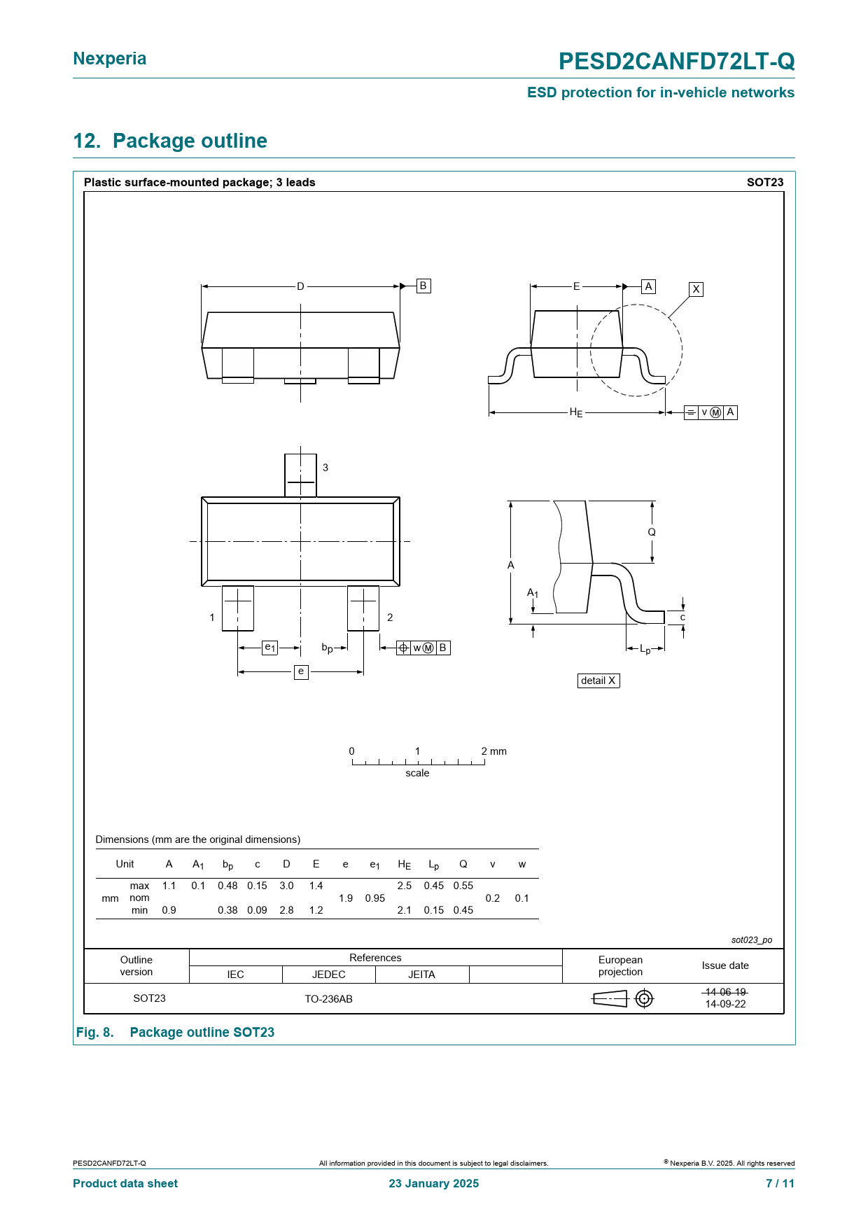 Nexperia. PESD2CANFD72LT-Q. ESD protection for in-vehicle networks. 12. Package outline