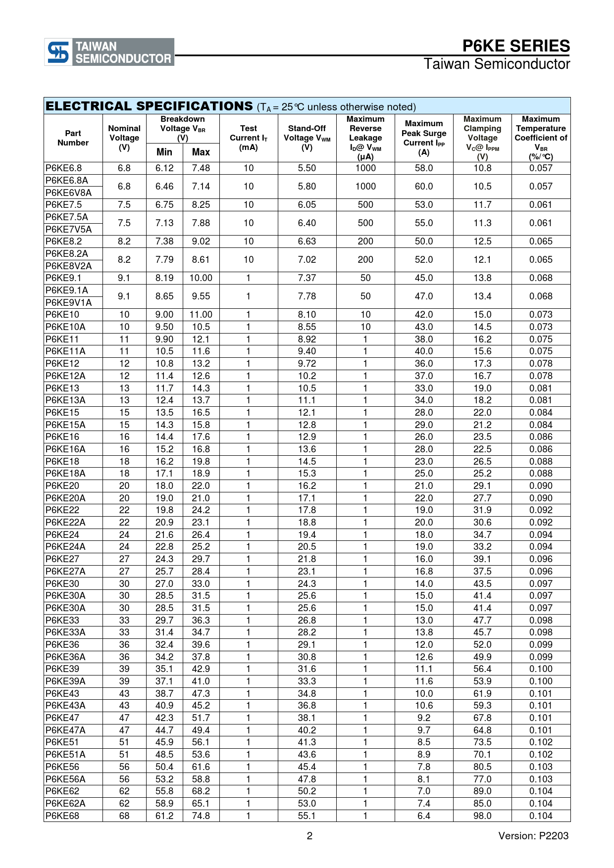 Datasheet P6KE (Taiwan Semiconductor) - 2