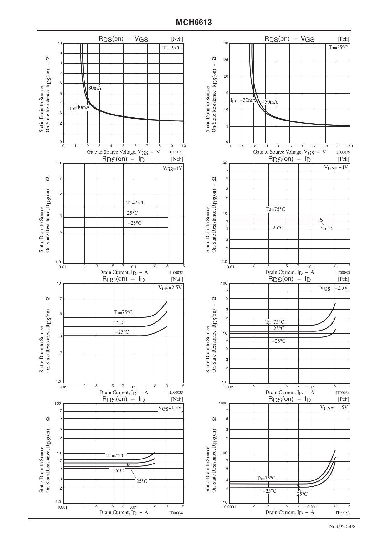 | Seiten / Seite | 8 / 4 — MCH6613. RDS(on) -VGS 10 [Nch] RDS(on) -VGS 30 [Pch]. Ta=25°C Ta=25°C. … |