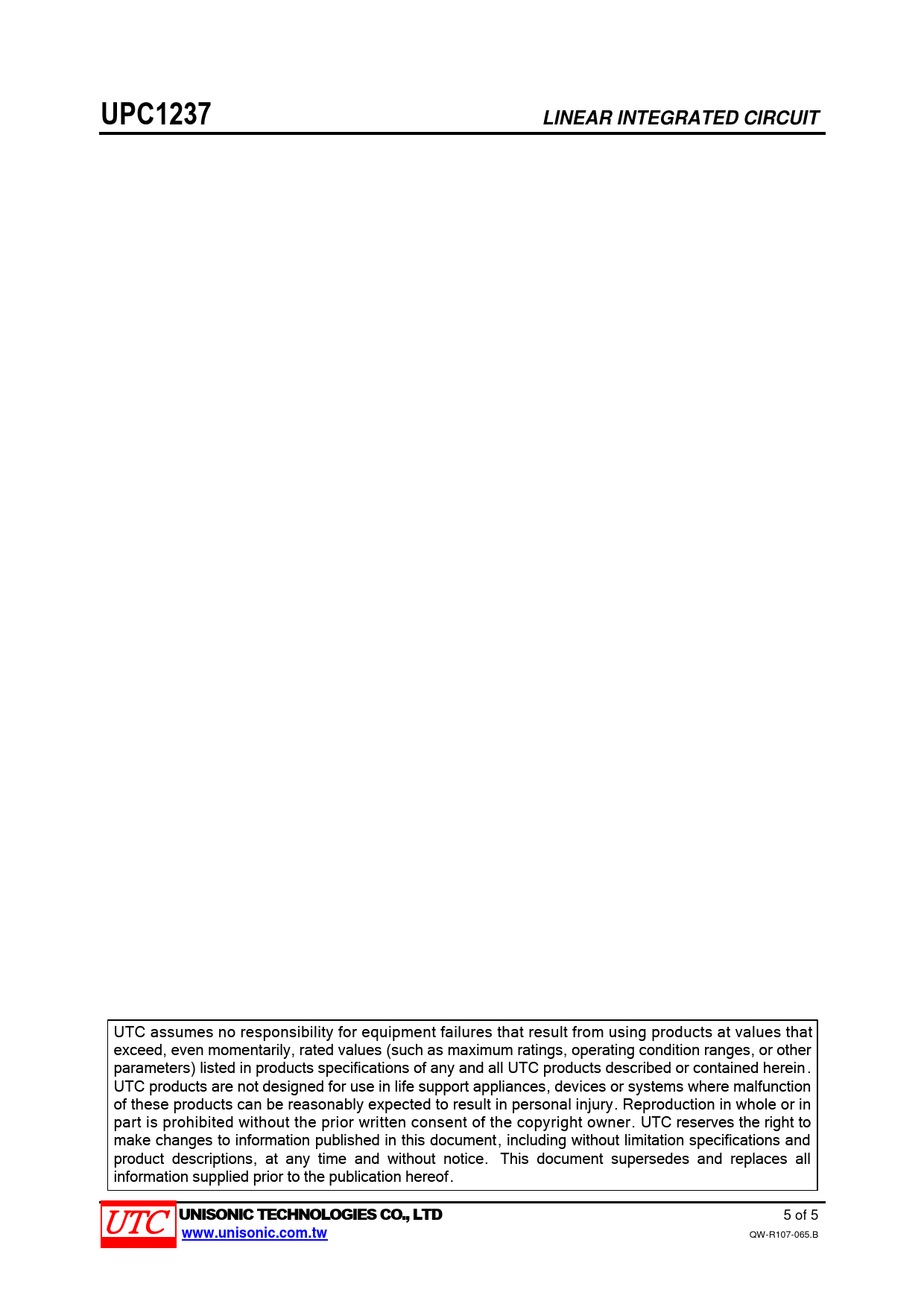 Seiten / Seite5 / 5 — UPC1237. LINEAR INTEGRATED CIRCUIT. UNISONIC TECHNOLOGIES CO., LTD. …