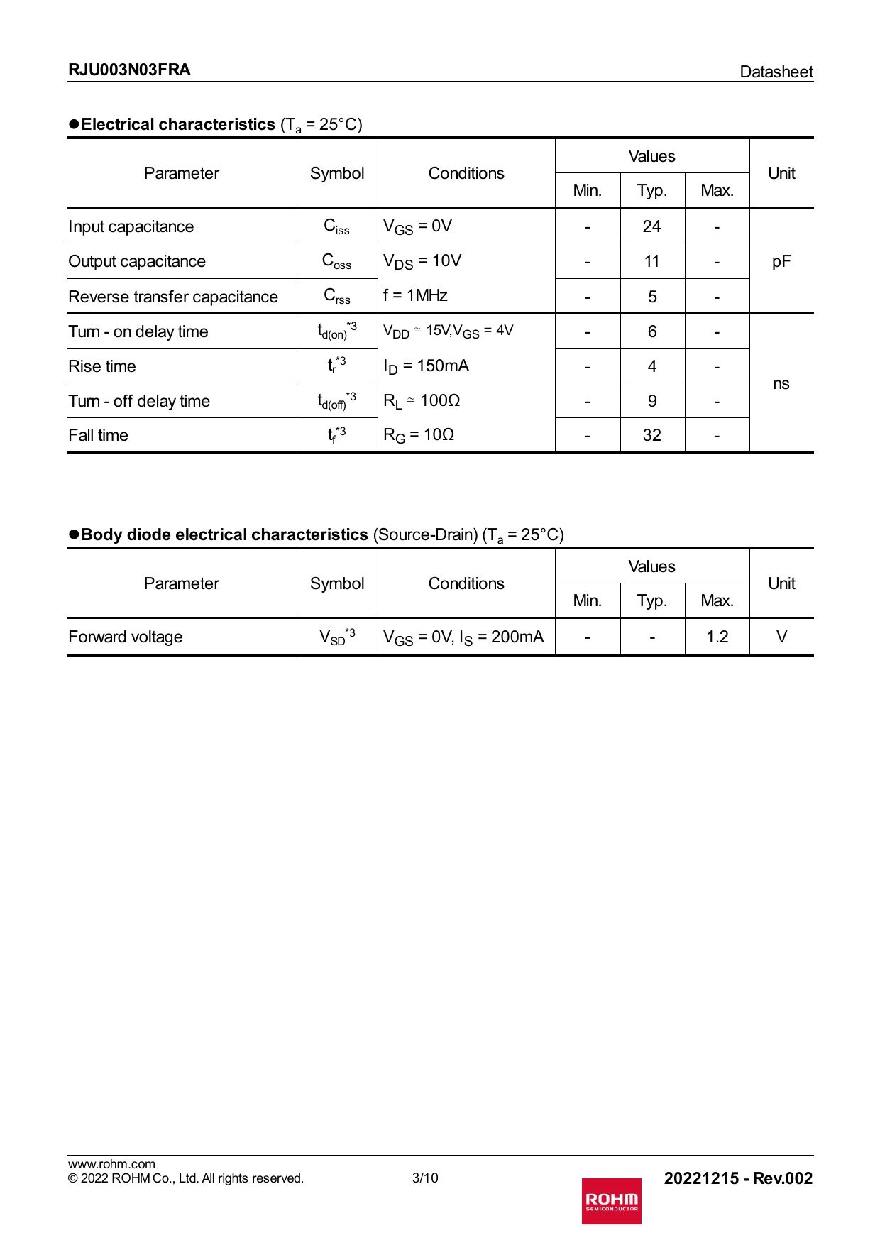 | Seiten / Seite | 13 / 3 — RJU003N03FRA. Electrical characteristics. Body diode electrical … |