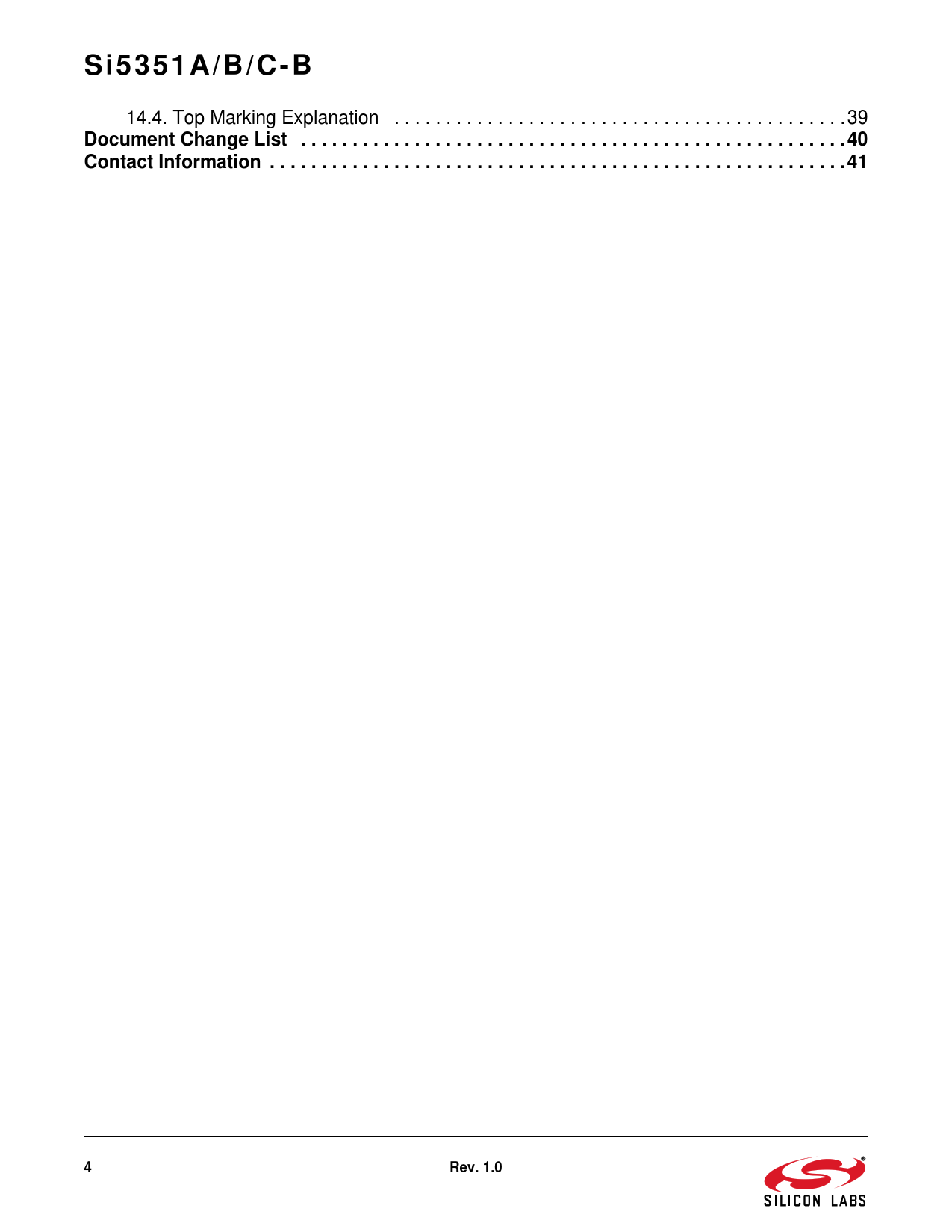 S i 5 3 5 1 A / B / C - B. Document Change List . 40. Contact Information . 41. Rev. 1.0