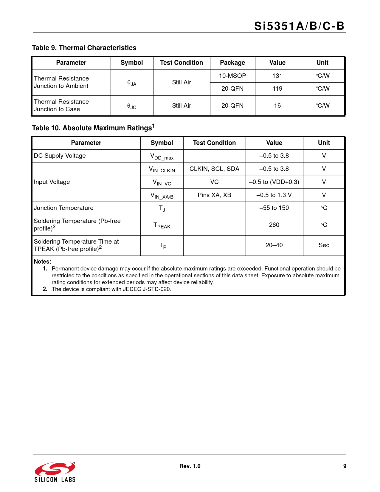 S i 5 3 5 1 A / B / C - B. Table 9. Thermal Characteristics. Parameter. Symbol. Test Condition. Package. Value. Unit