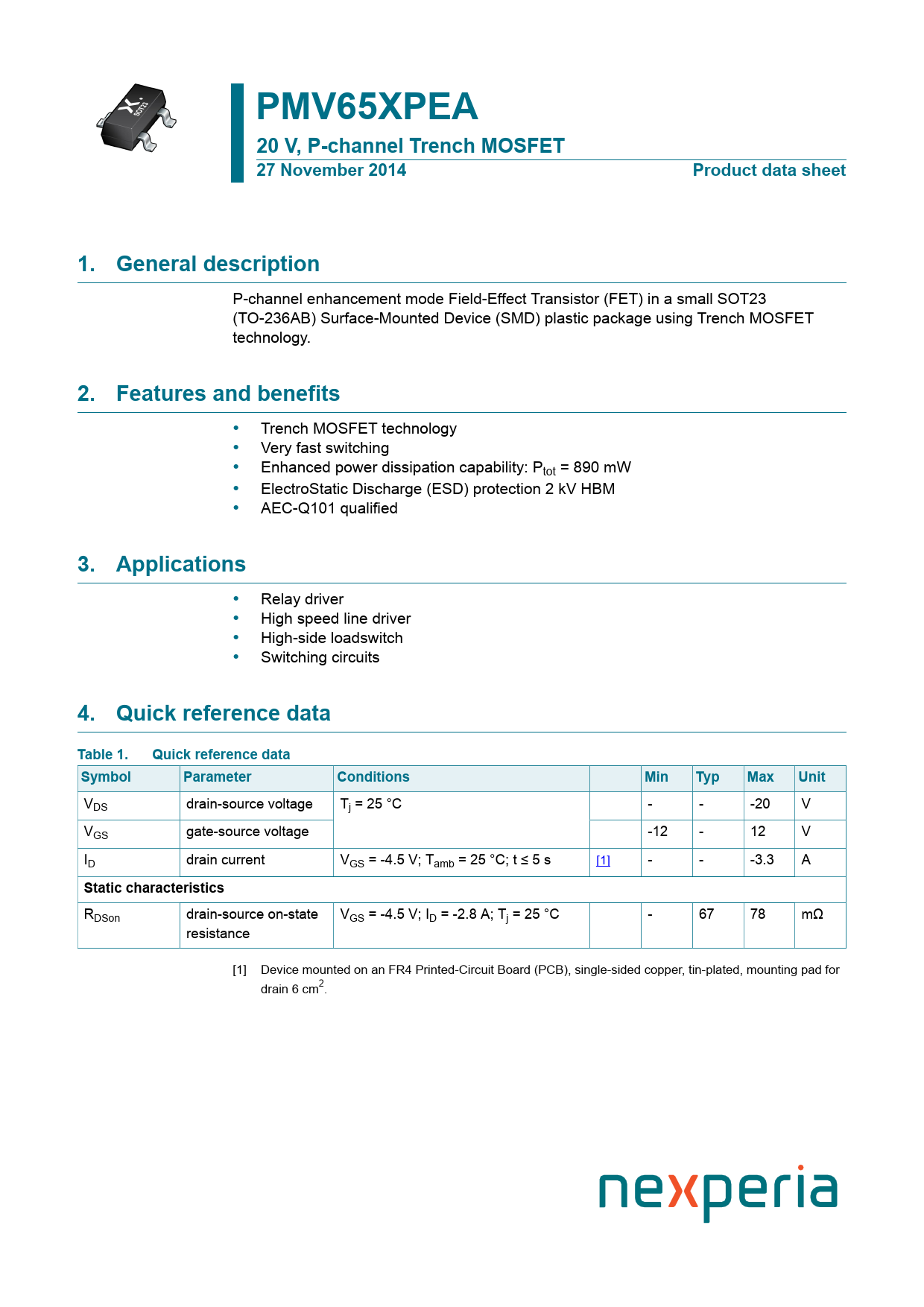 Datasheet PMV65XPEA (Nexperia)