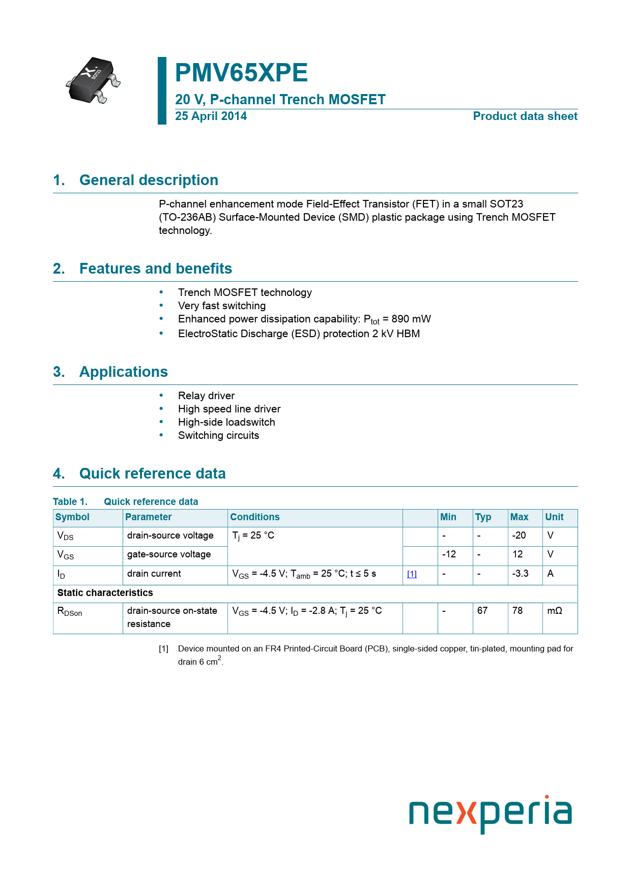 Datasheet PMV65XPE Nexperia, Revision: 04201705