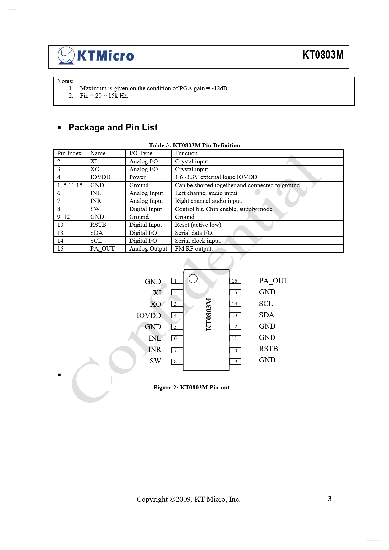 Copyright ©2009, KT Micro, Inc. 3 Datasheet pdf - http://www.DataSheet4U.net/