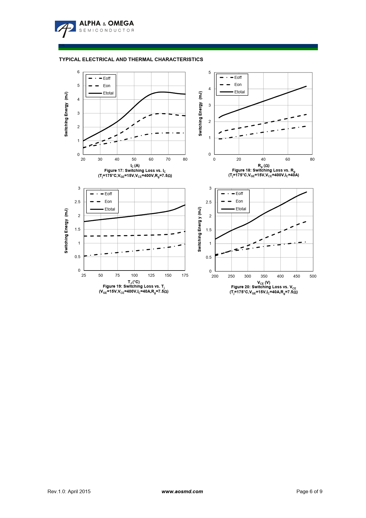 TYPICAL ELECTRICAL AND THERMAL CHARACTERISTICS. itc. I (A). R (. Figure 17: Switching Loss vs. I. Figure 18: Switching Loss vs. R