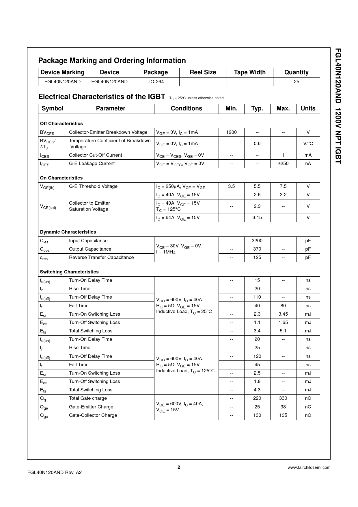 Datasheet FGL40N120AND (ON Semiconductor)