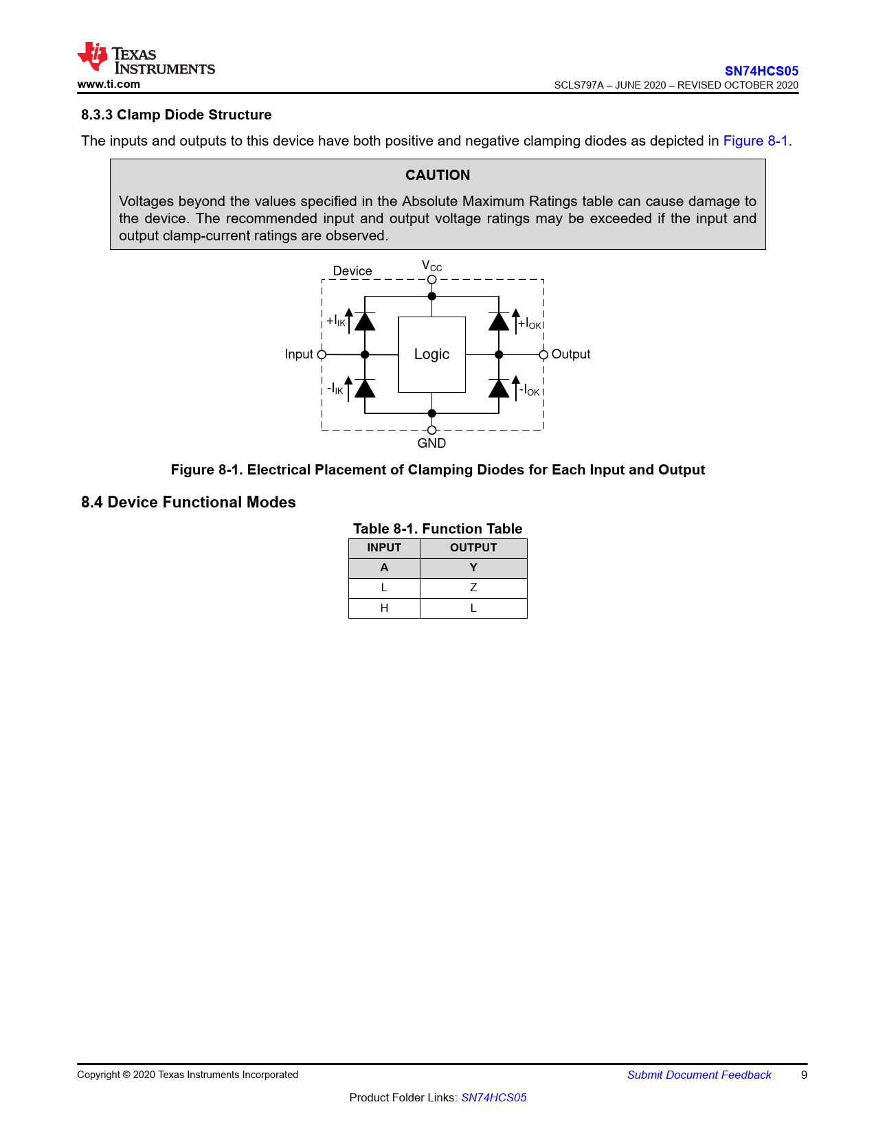 SN74HCS05. www.ti.com. 8.3.3 Clamp Diode Structure. CAUTION