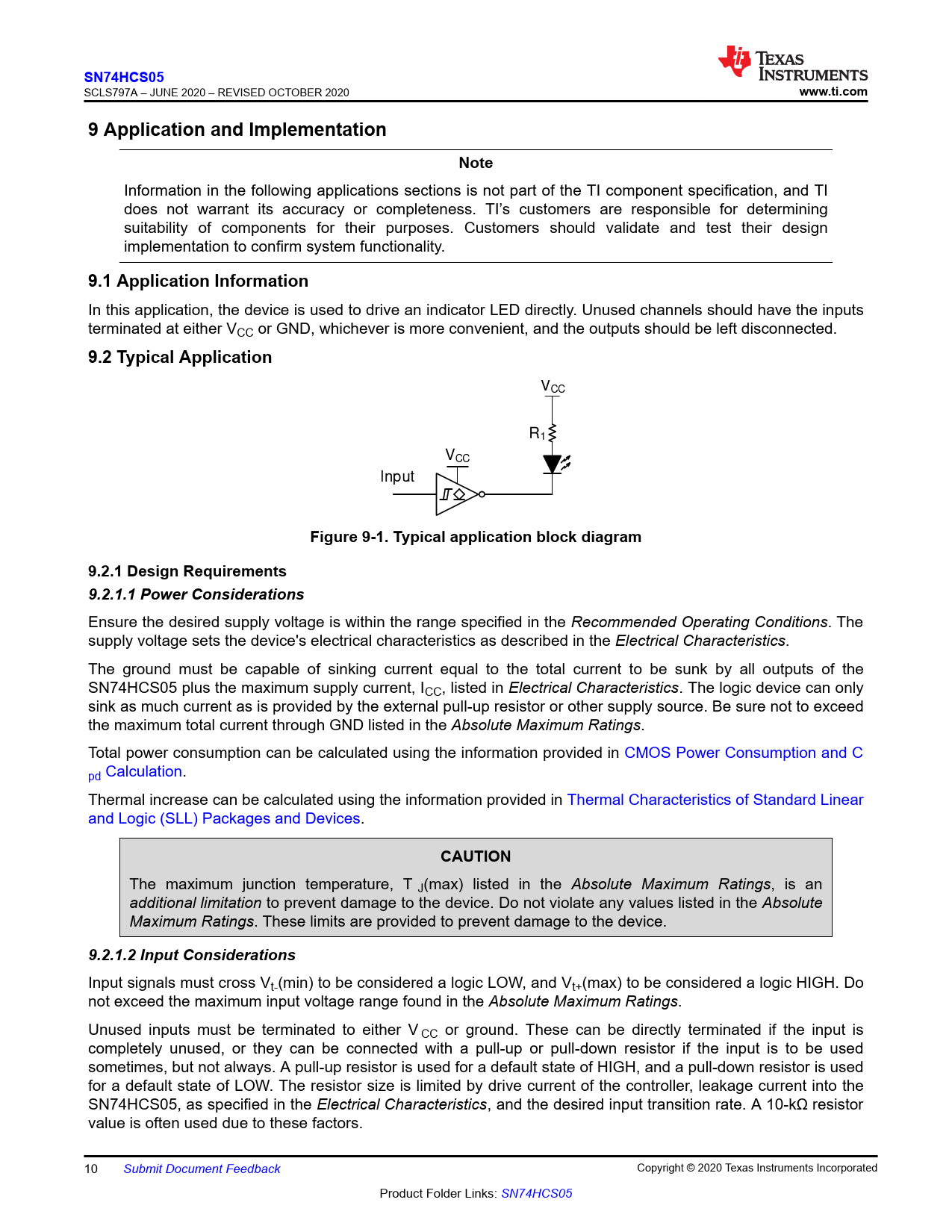 | Seiten / Seite | 24 / 10 — SN74HCS05. www.ti.com. 9 Application and Implementation. Note. 9.1 … |