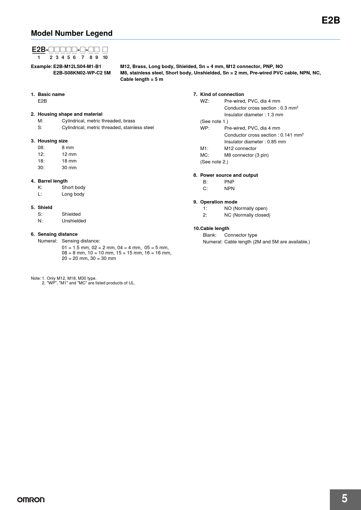 | Seiten / Seite | 22 / 5 — E2B. Model Number Legend. E2B-. 2 3 4 5 6. 8 9. Example: E2B-M12LS04-M1-B1 |