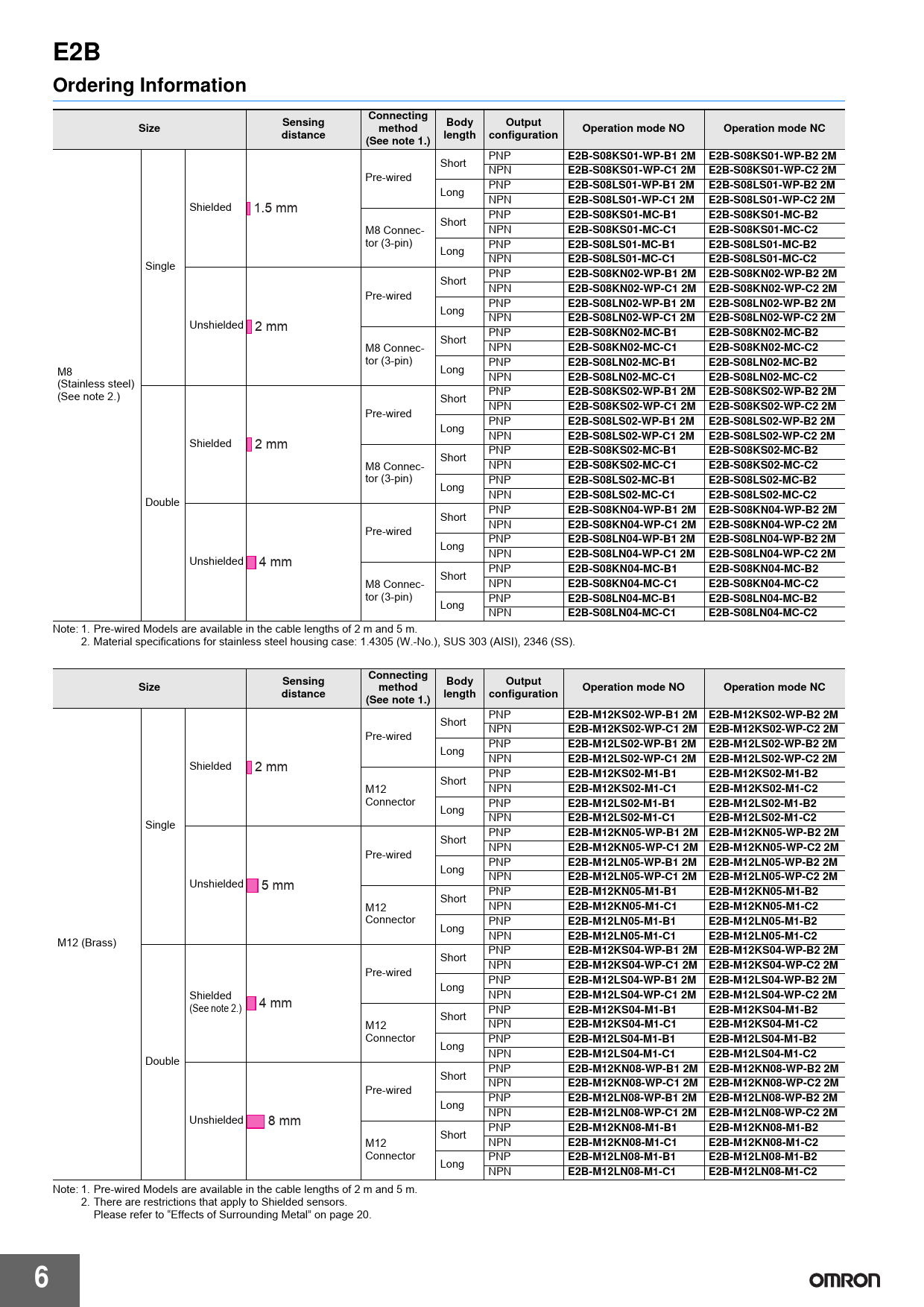 Note: 1. Pre-wired Models are available in the cable lengths of 2 m and 5 m. 2. There are restrictions that apply to Shielded sensors. Please refer to “Effects of Surrounding Metal” on page 20.