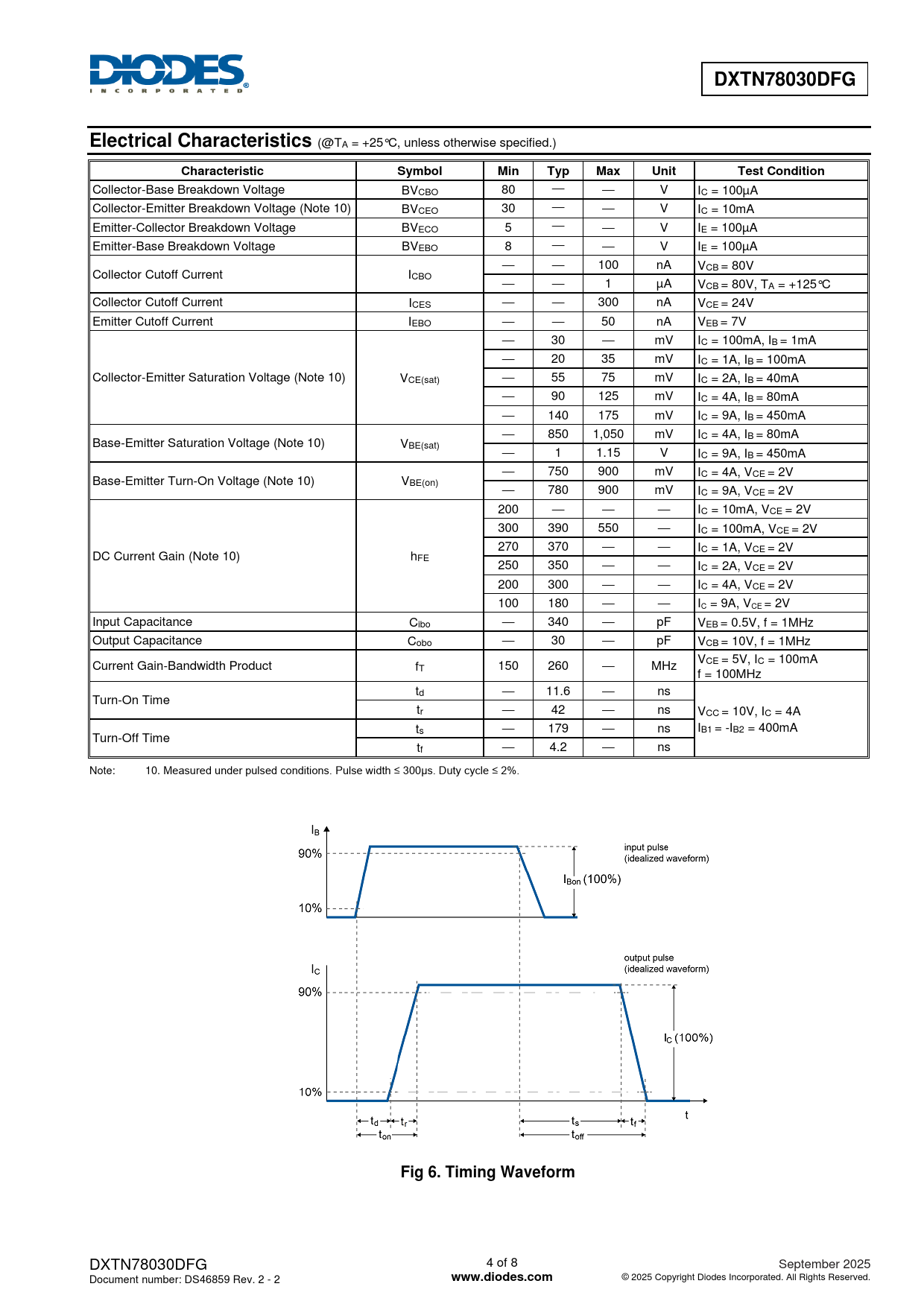 DXTN78030DFG. Electrical Characteristics. Characteristic. Symbol. Min. Typ. Max. Unit. Test Condition. Fig 6. Timing Waveform
