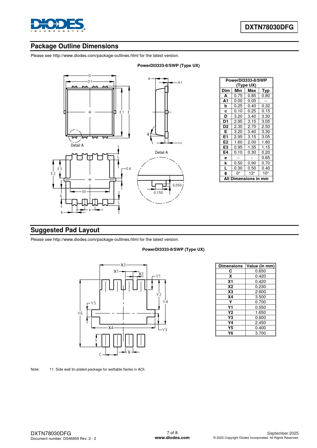 | Seiten / Seite | 8 / 7 — DXTN78030DFG. Package Outline Dimensions. PowerDI3333-8/SWP (Type UX). … |