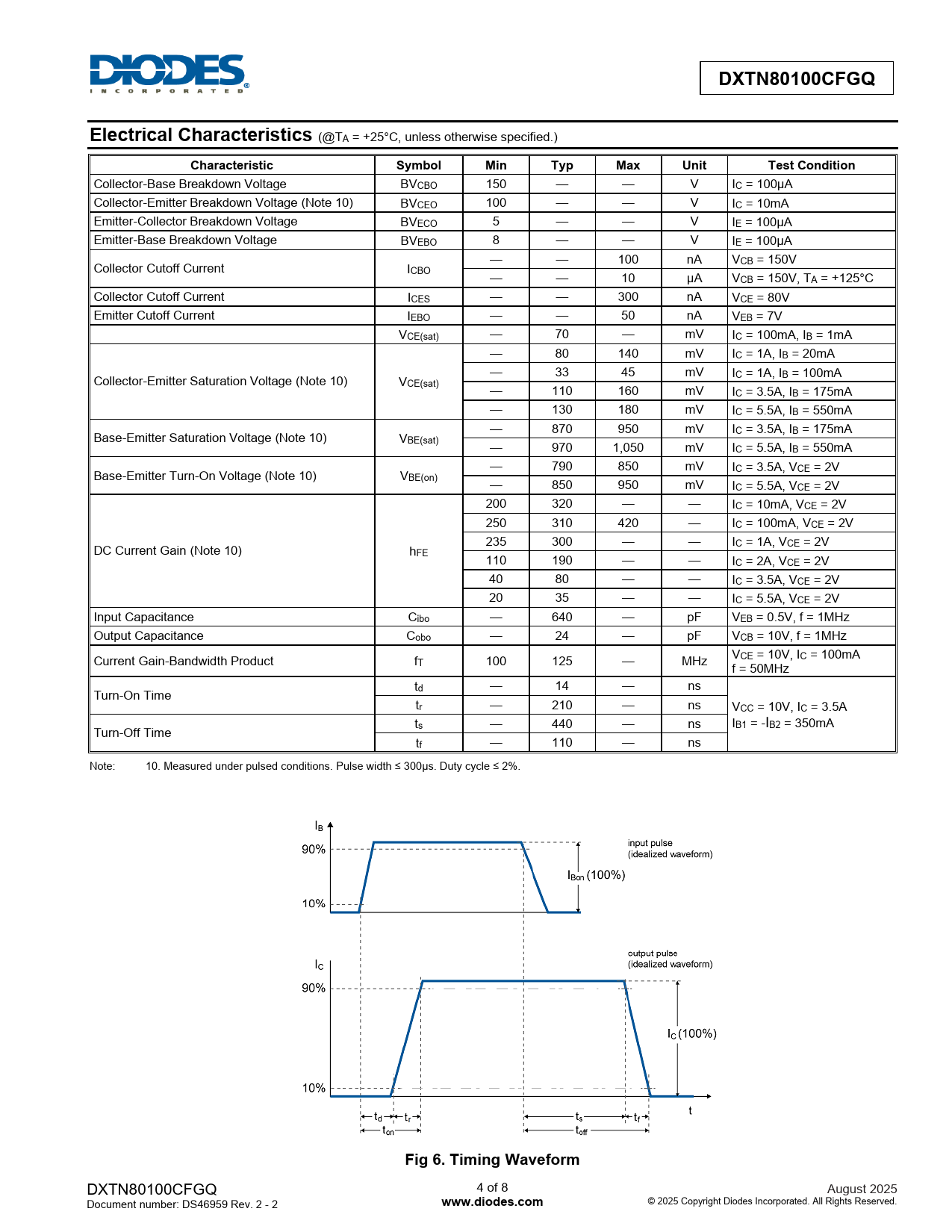 DXTN80100CFGQ. Electrical Characteristics. Characteristic. Symbol. Min. Typ. Max. Unit. Test Condition. Fig 6. Timing Waveform