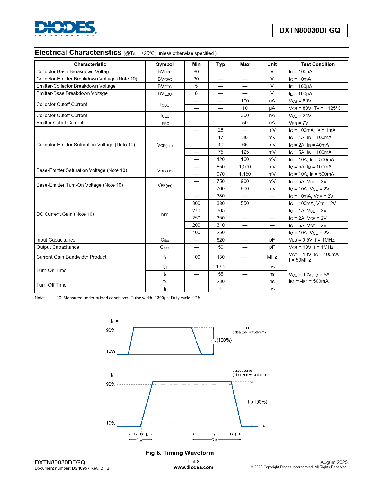 DXTN80030DFGQ. Electrical Characteristics. Characteristic. Symbol. Min. Typ. Max. Unit. Test Condition. Fig 6. Timing Waveform