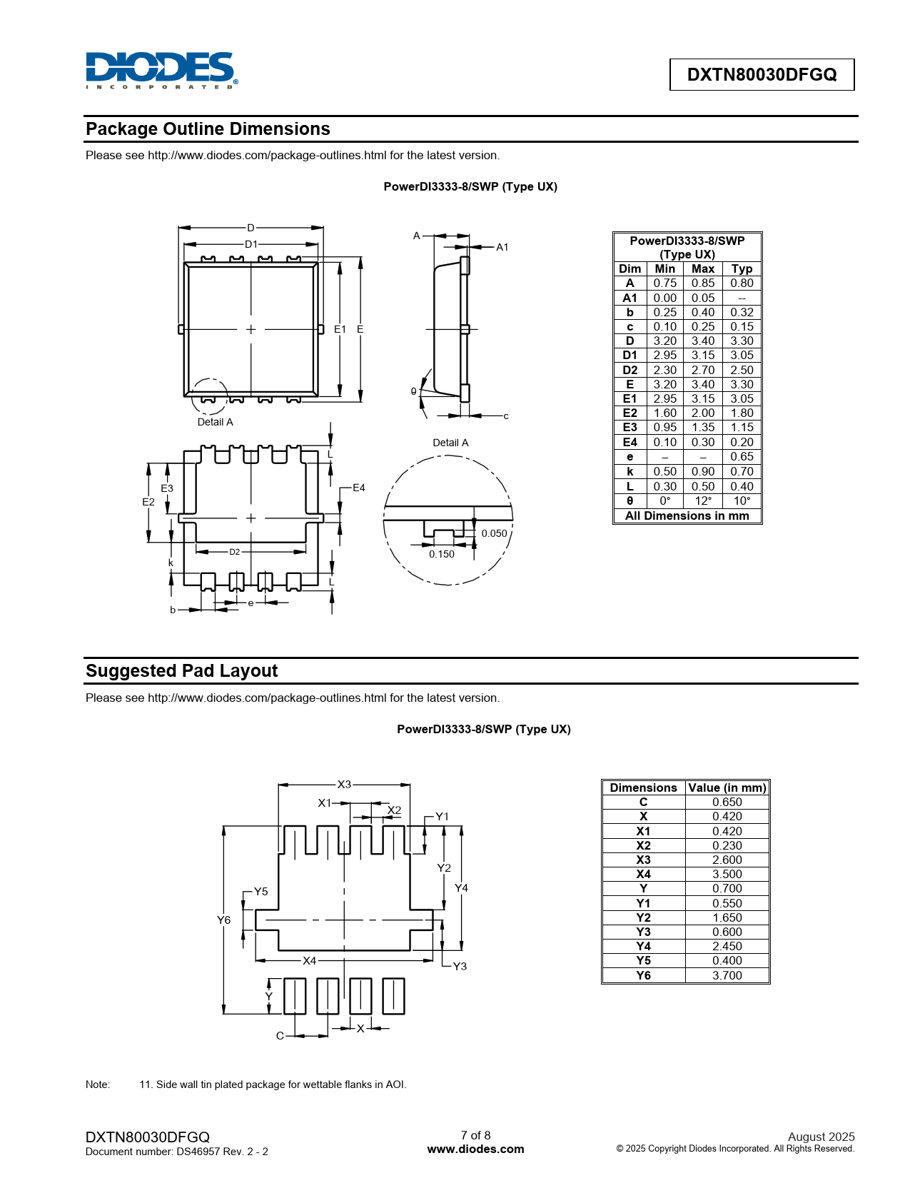 3.700 Y X C Note: 11. Side wall tin plated package for wettable flanks in AOI. DXTN80030DFGQ 7 of 8 August 2025 Document number: DS46957 Rev. 2 - 2