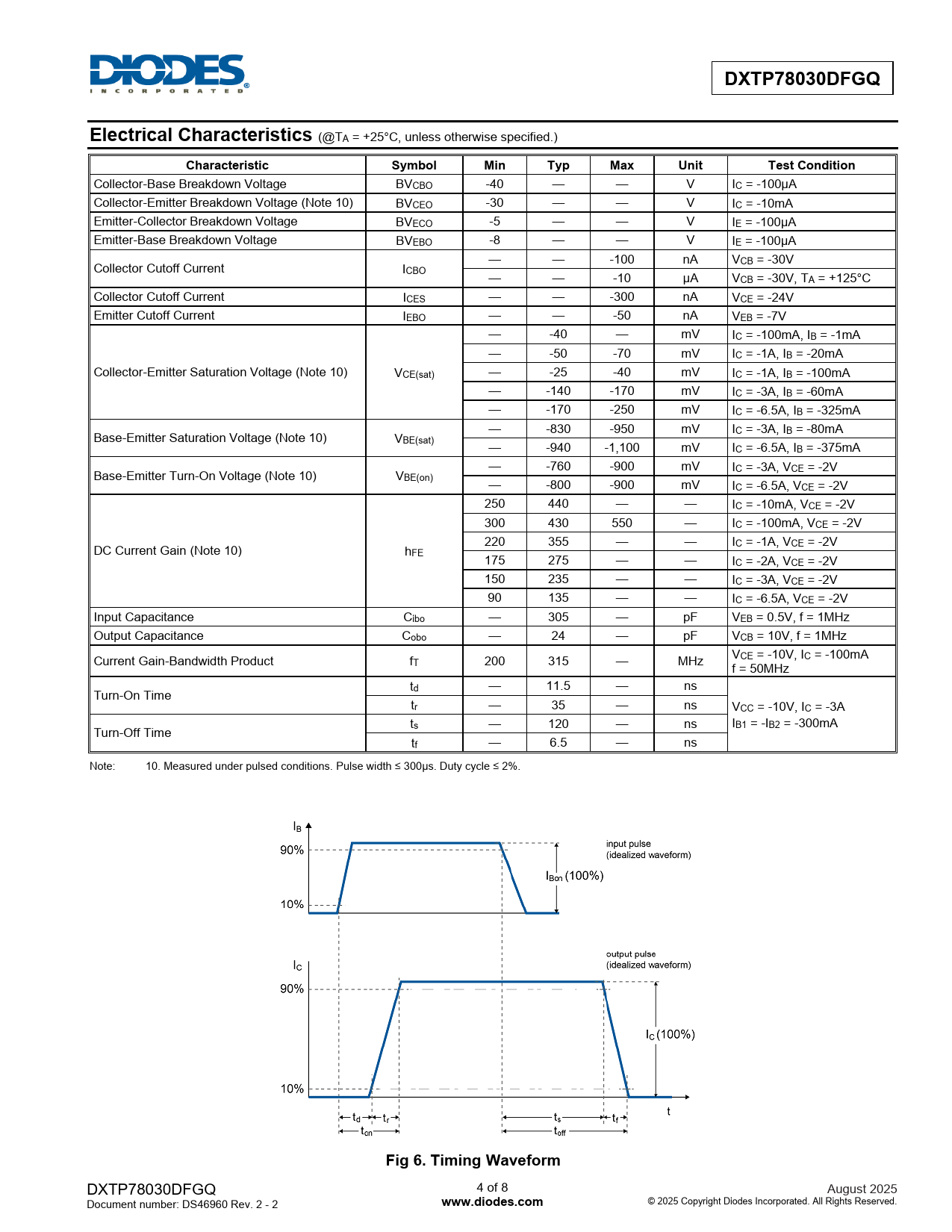 DXTP78030DFGQ. Electrical Characteristics. Characteristic. Symbol. Min. Typ. Max. Unit. Test Condition. Fig 6. Timing Waveform