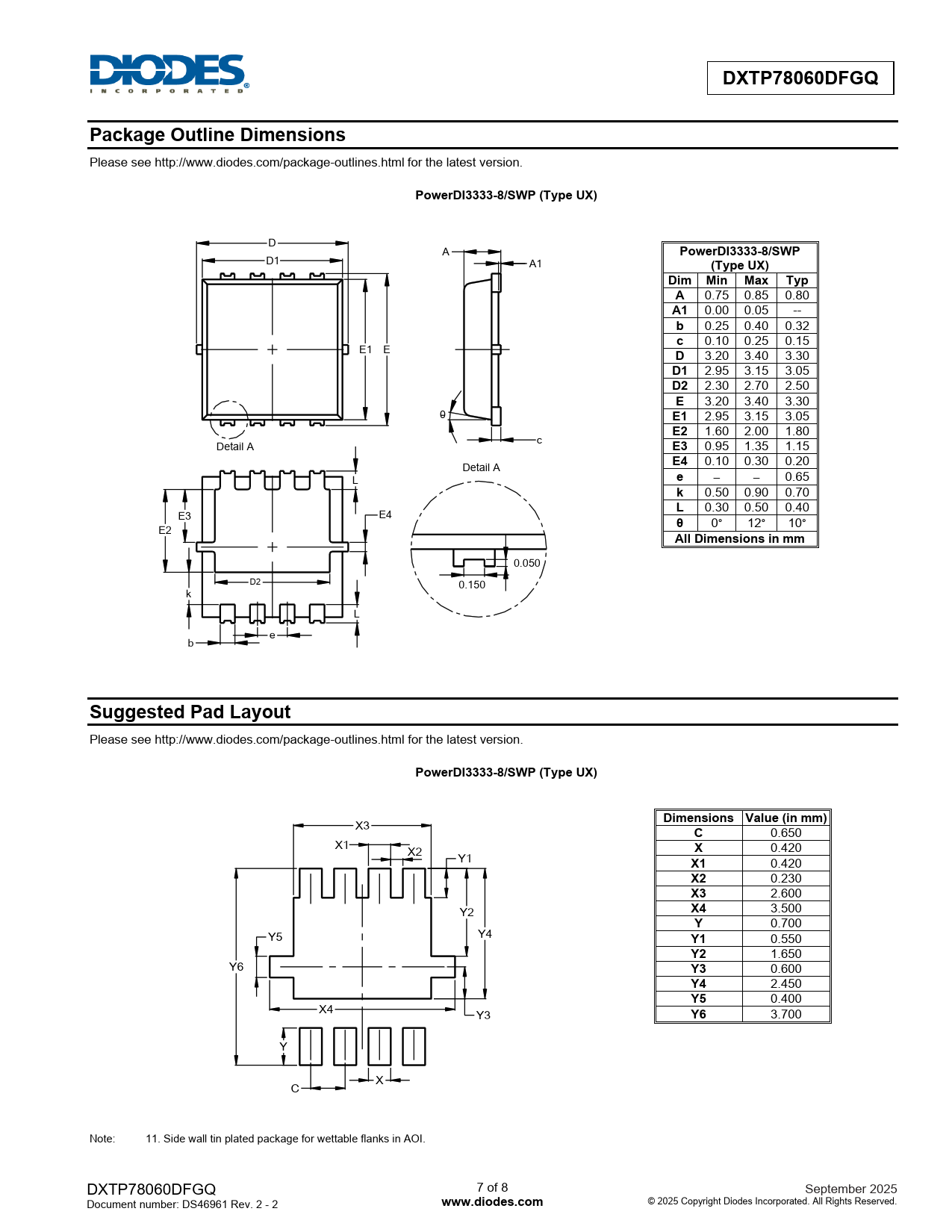 DXTP78060DFGQ. Package Outline Dimensions. PowerDI3333-8/SWP (Type UX). PowerDI3333-8/SWP. (Type UX). Dim Min Max. Typ