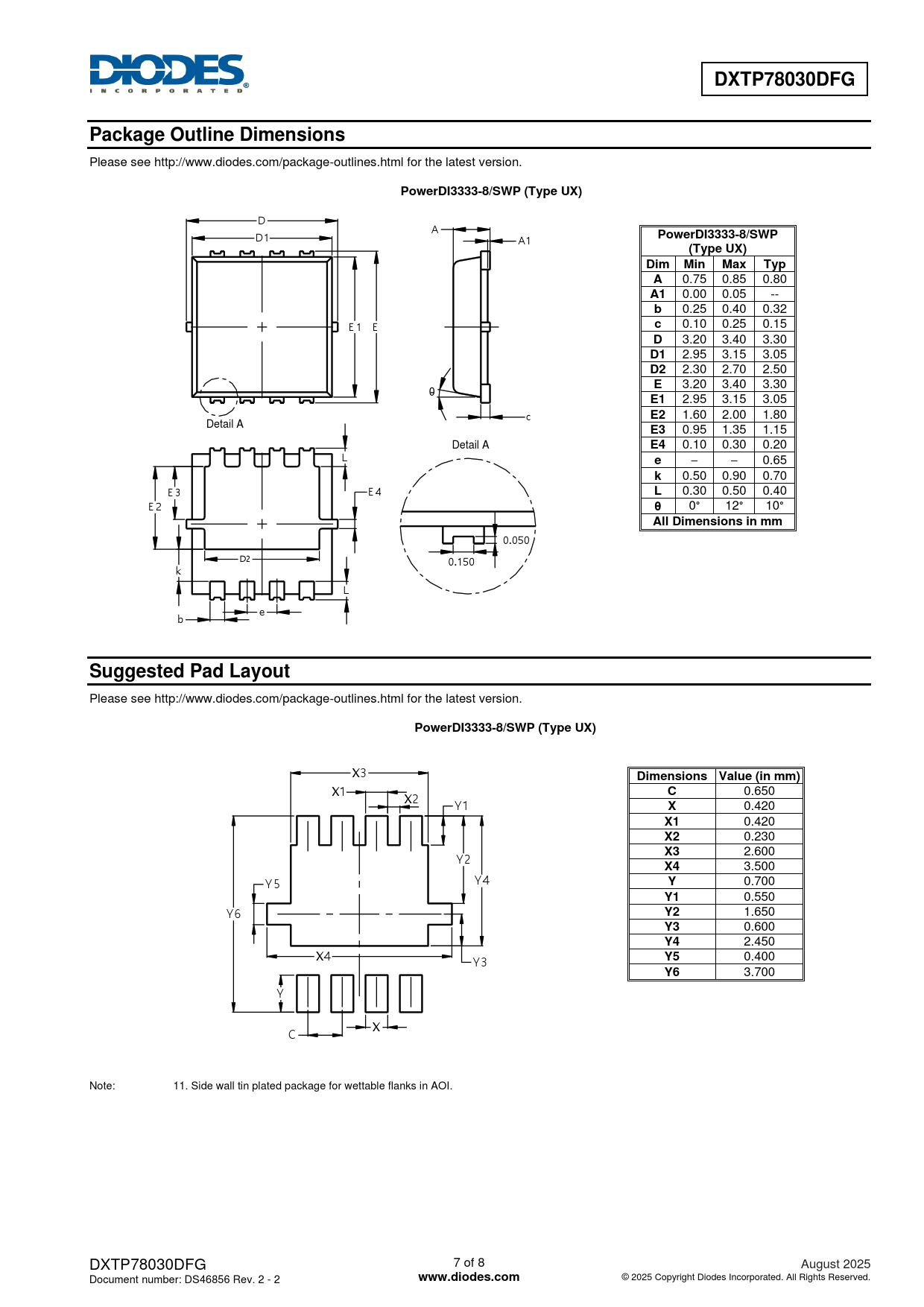 DXTP78030DFG. Package Outline Dimensions. PowerDI3333-8/SWP (Type UX). PowerDI3333-8/SWP. (Type UX). Dim Min. Max. Typ