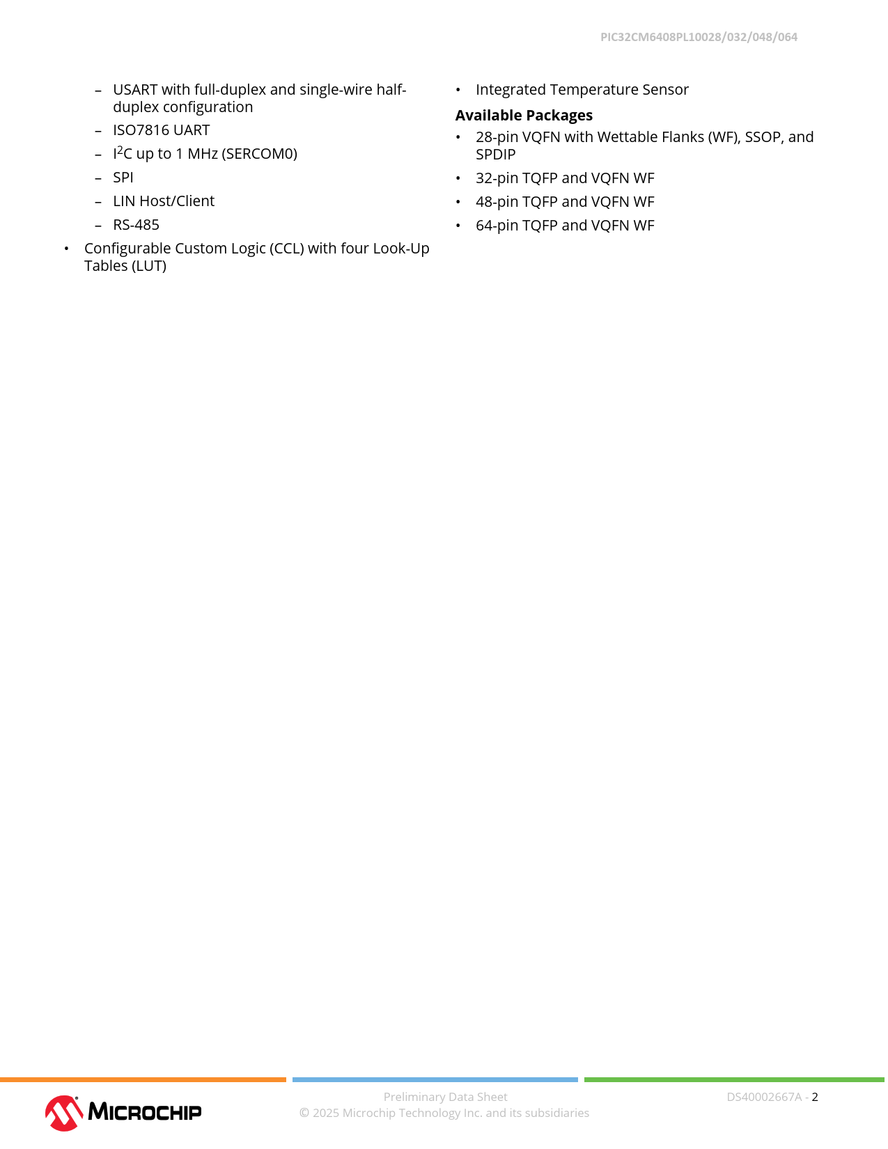 Datasheet PIC32CM6408PL10028, PIC32CM6408PL100032, PIC32CM6408PL100048, PIC32CM6408PL100064 (Microchip) - 2