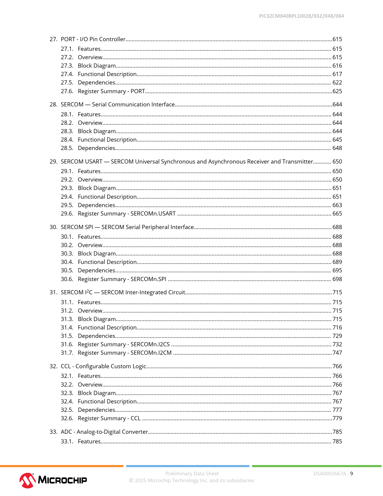 Datasheet PIC32CM6408PL10028, PIC32CM6408PL100032, PIC32CM6408PL100048, PIC32CM6408PL100064 (Microchip) - 9