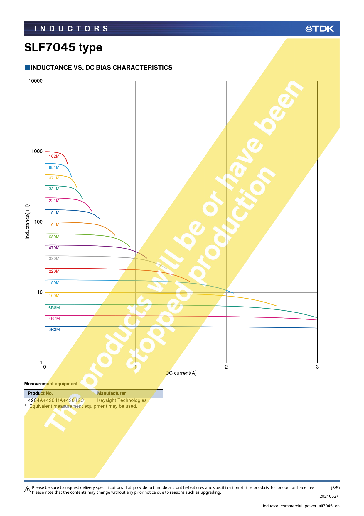 4284A+42841A+42842C Keysight Technologies * Equivalent measurement equipment may be used. Please be sure to request delivery specif i cati ons t hat pr ovi de f urt her det ail s on t he f eat ur es and s pecif i cat i ons of t he pr oducts for pr oper and safe use . (3/5) Please note that the contents may change without any prior notice due to reasons such as upgrading. 20240527 inductor_commercial_power_slf7045_en
