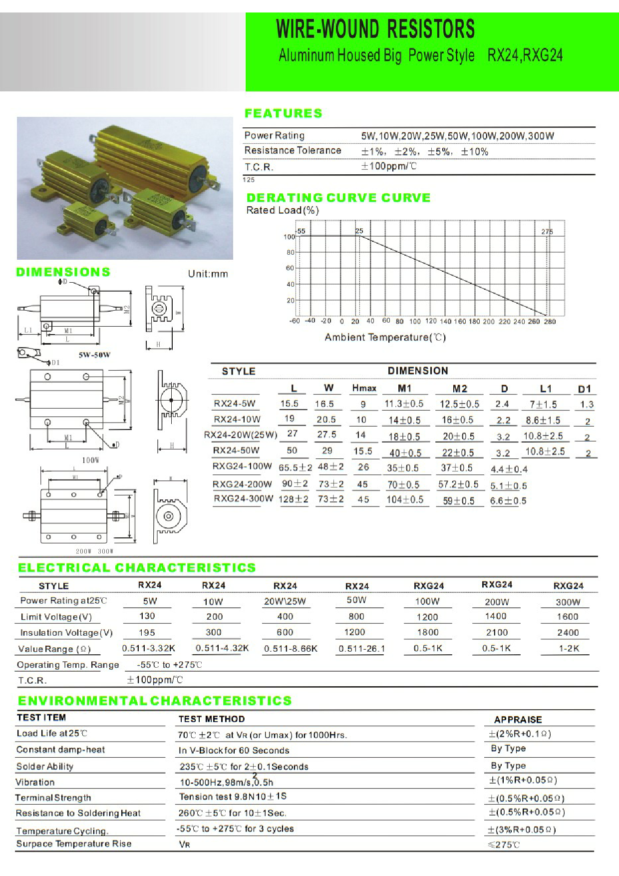 Datasheet RX24-5W, RX24-10W, RX24-20W, RX24-25W, RX24-50W, RXG24-100W, RXG24-200W, RXG24-300W (Ruichi)